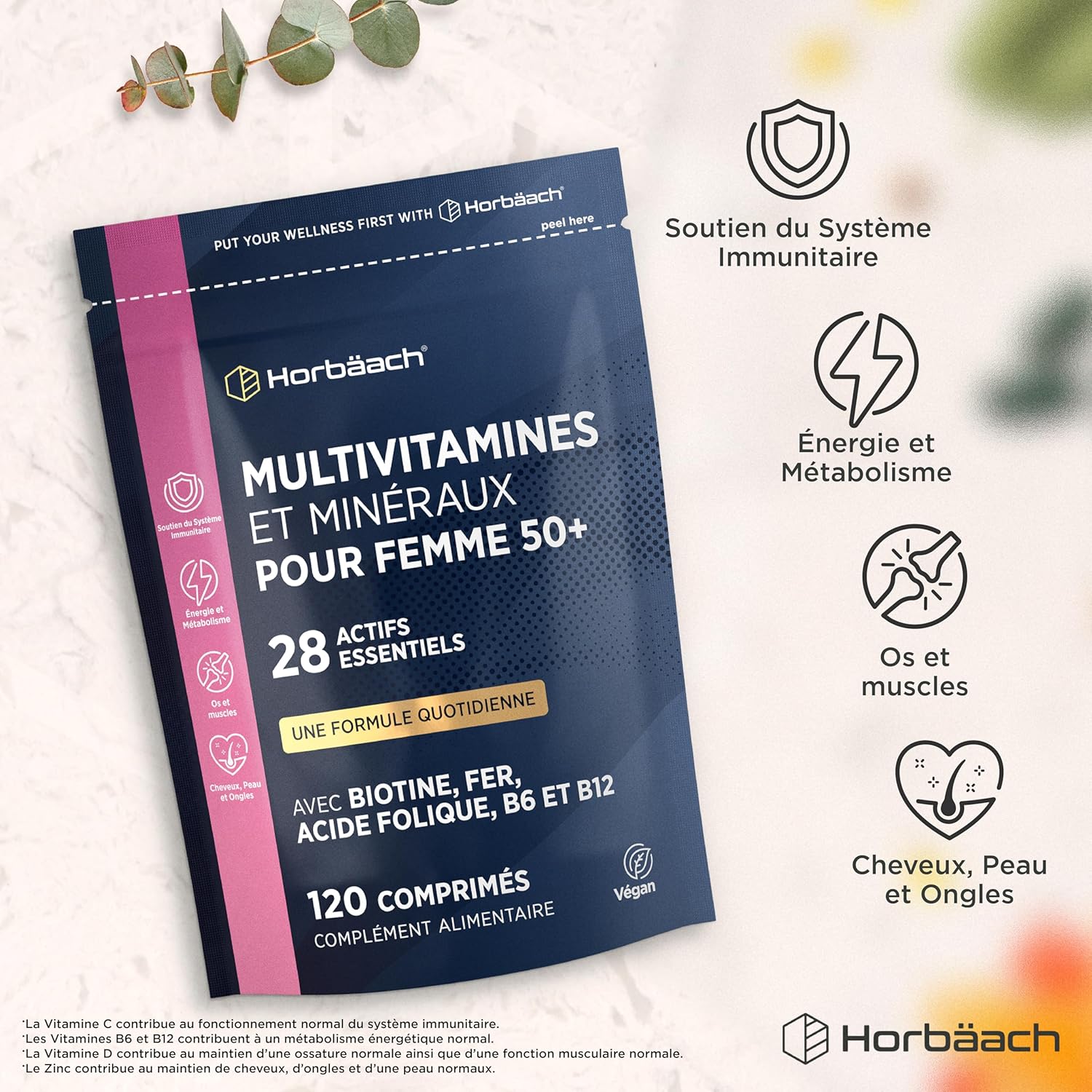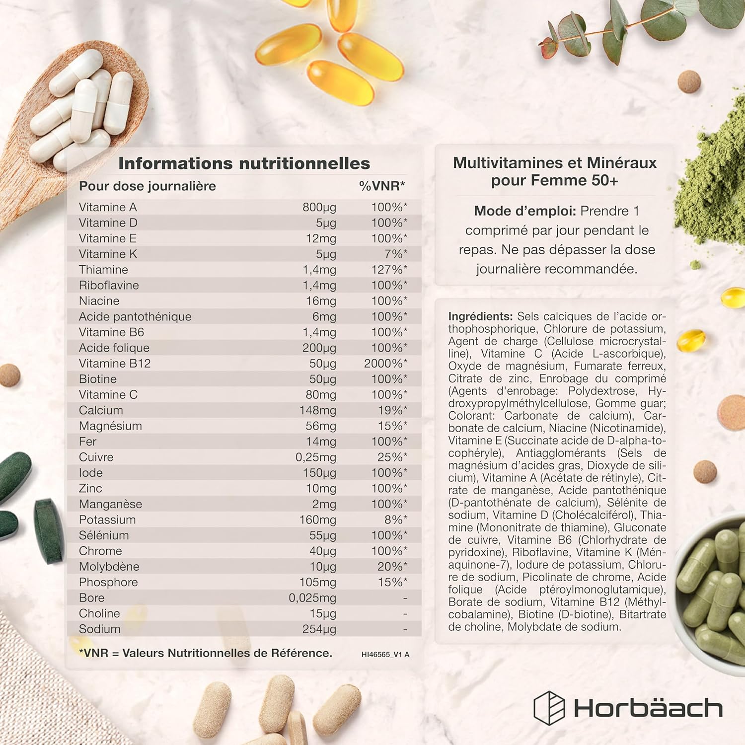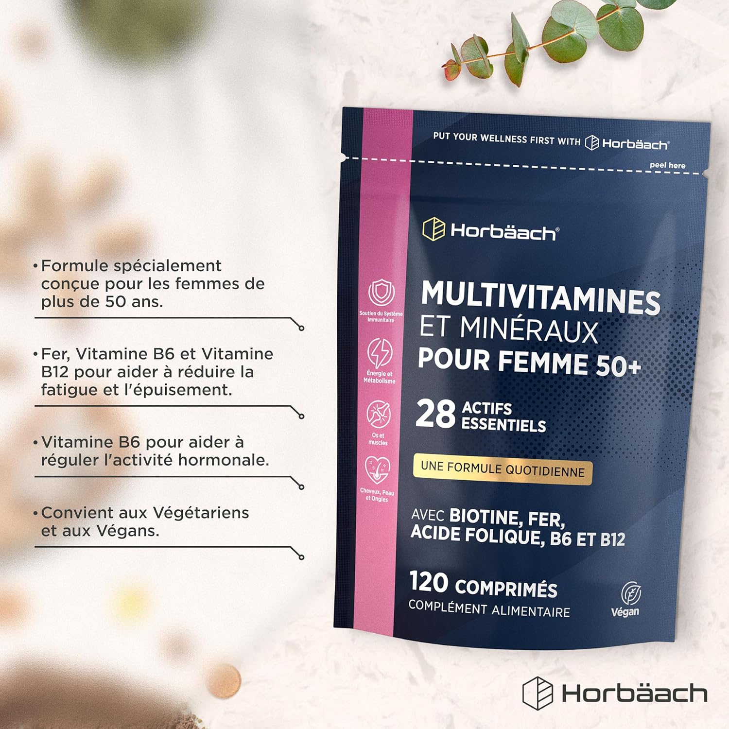 Horbaach Women’s 50 Plus multivitamin and mineral complex is expertly designed for women over 50. This is a common period during which many women go through menopause and experience many unpleasant symptoms.