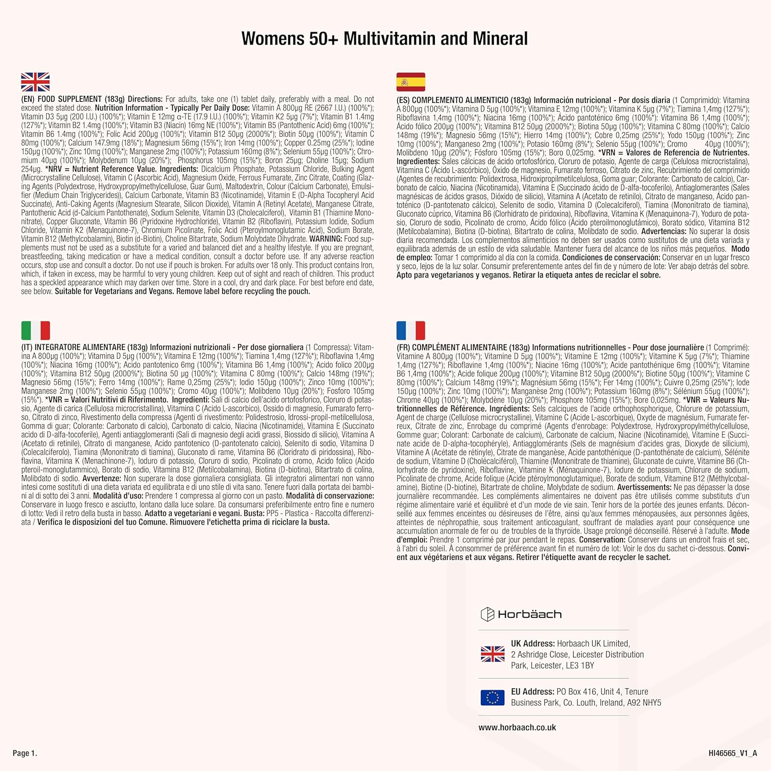 SUITABLE FOR: Horbaach Advance Multivitamins & Minerals 50+ for women is vegetarian and contains no artificial colours or preservatives.
