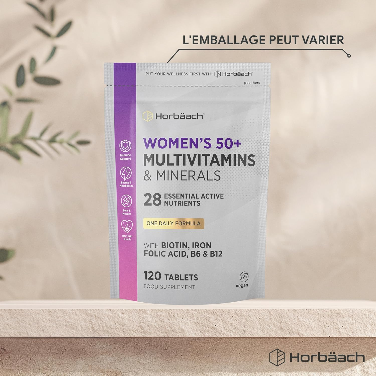 Multivitamins Women 50 Years | 27 Multivitamins, Minerals and Essential Plants | with Vitamin C for Normal Collagen Formation, Biotin, B6 and B12 | 120 Vegetarian Tablets | by Horbaach