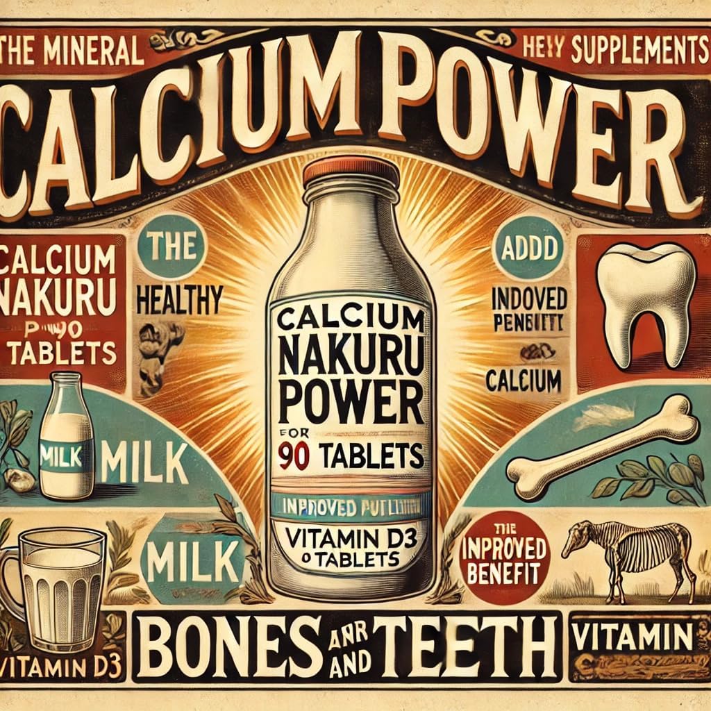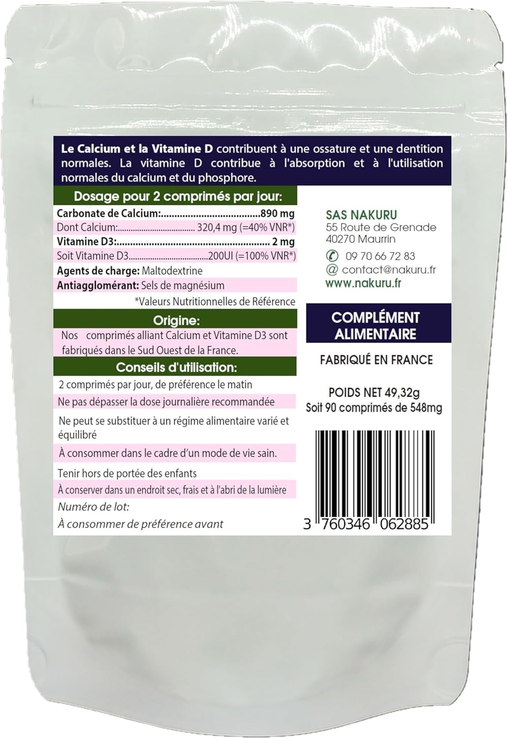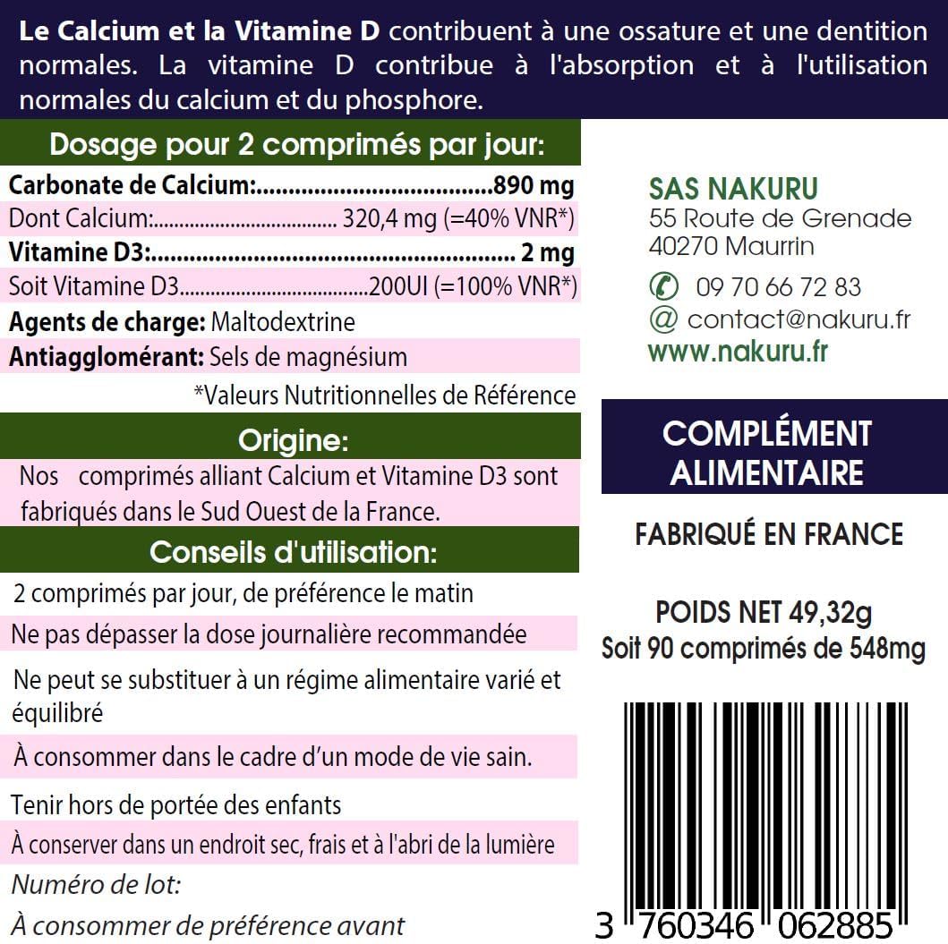 NAKURU | Calcium + Vitamin D3 | Power Range | Made in France | “Mineral Power!” (90 Tablets of 548mg / Net Weight: 49.5g)