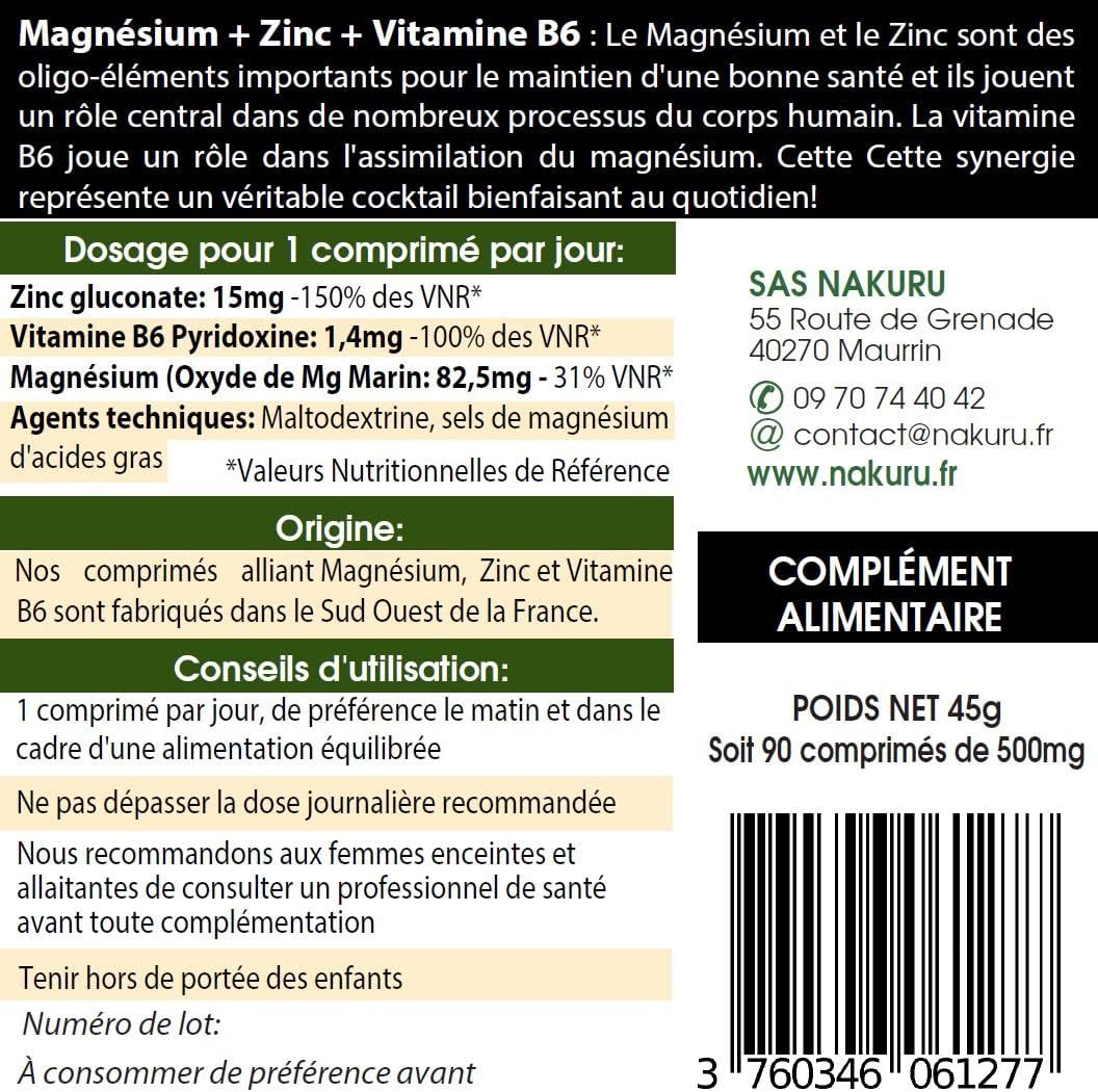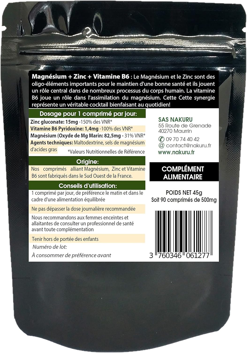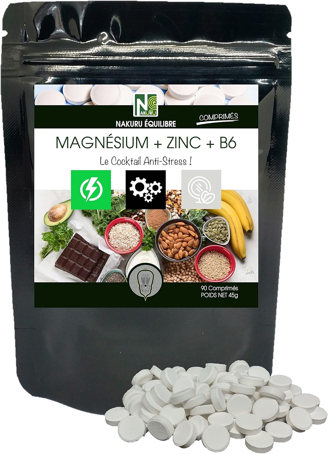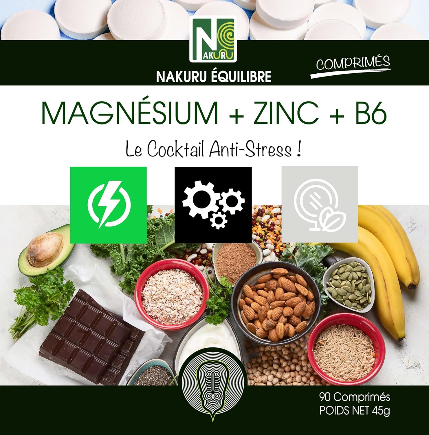 NAKURU | Magnesium + Zinc + Vitamin B6 | NAKURU Equilibrium | Made in France | “Le Cocktail Anti-Stress ” | (90 Tablets of 500 mg/Net Weight: 45 g)