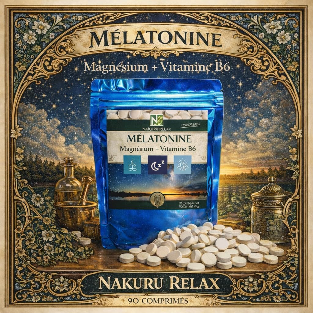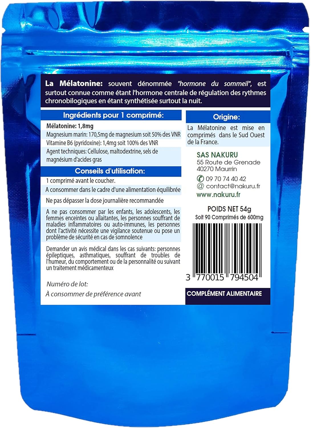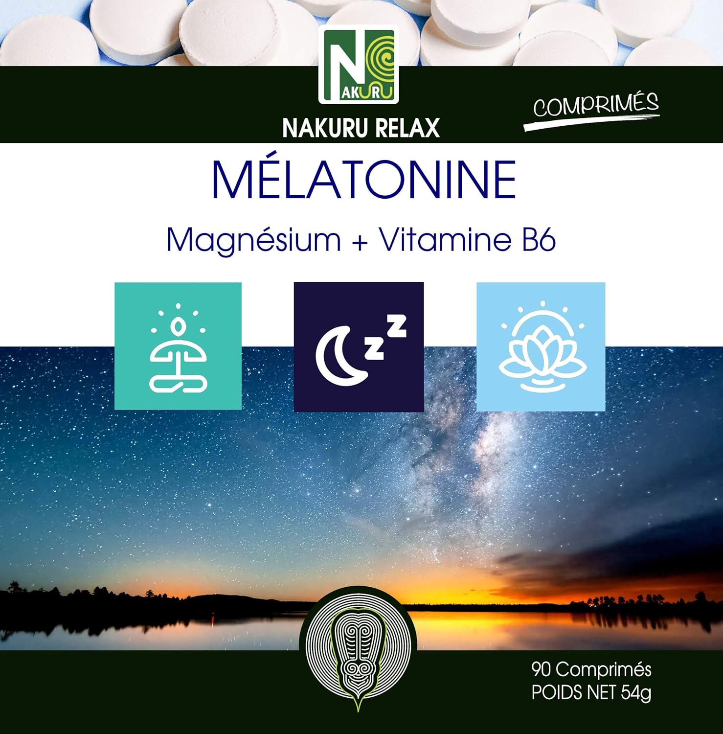 NAKURU | Melatonin Forte 1.8mg – Magnesium – Vitamin B6 | 90 Tablets of 600mg | Relax Range | Made in France/Net Weight: 54g