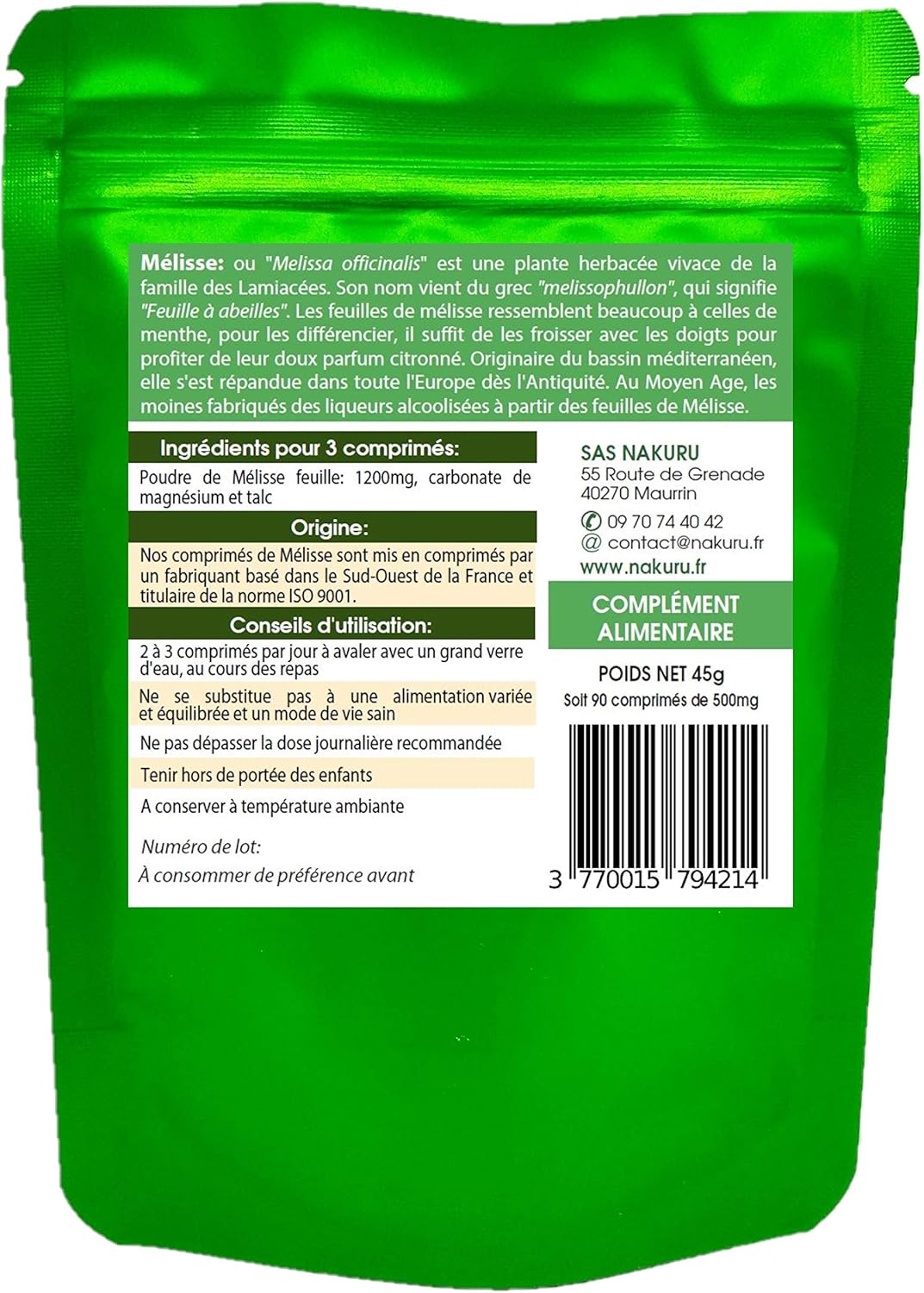 NAKURU | Melissa | 90 Tablets of 500mg | Relax Range | Made in France / “Le Piment des Abeilles!”
