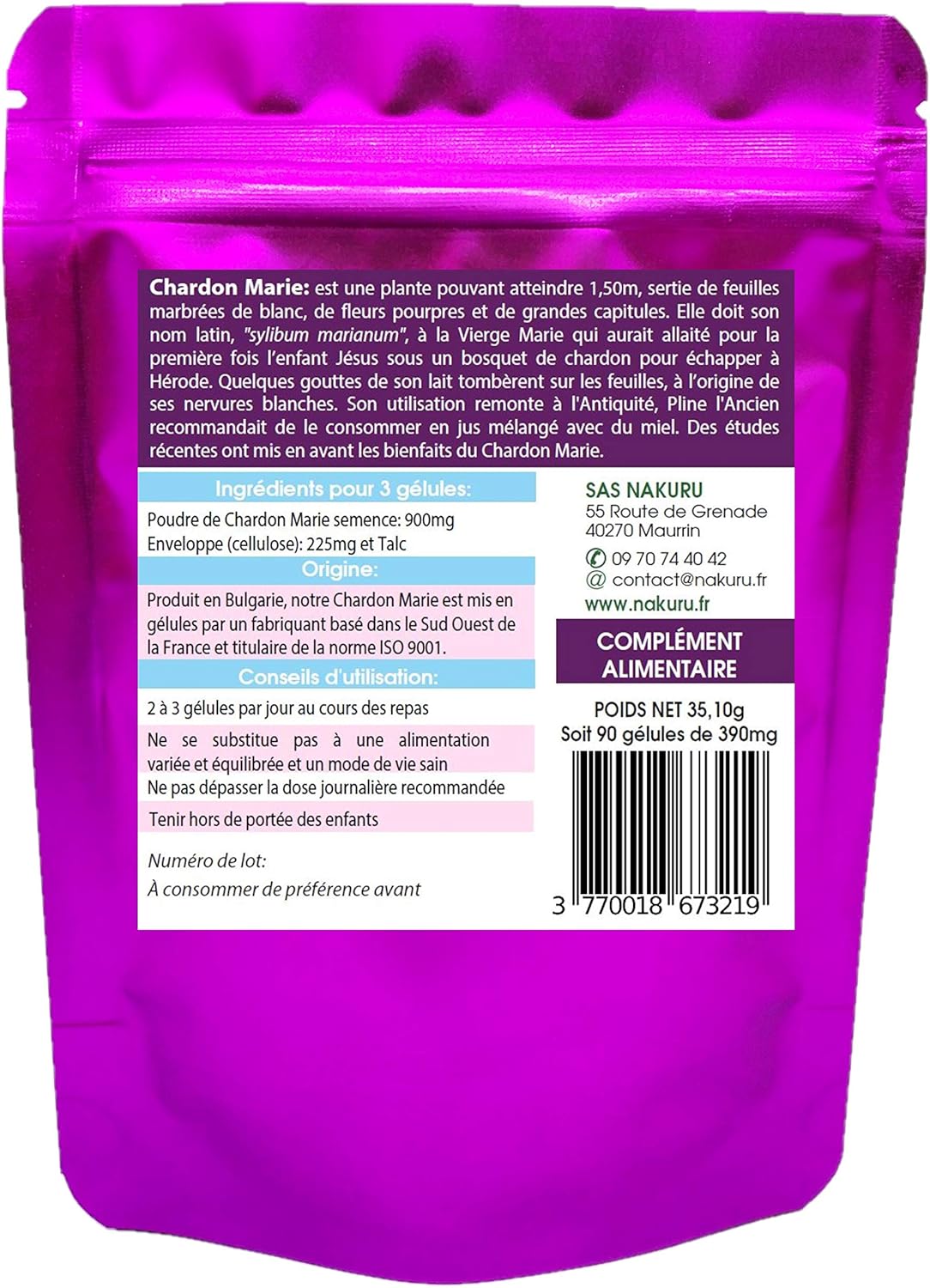 NAKURU | Milk Thistle | Power Range | Made in France | “La Mauvaise Herbe Purifying!” | (90 Capsules of 390 mg / Net Weight: 35g)