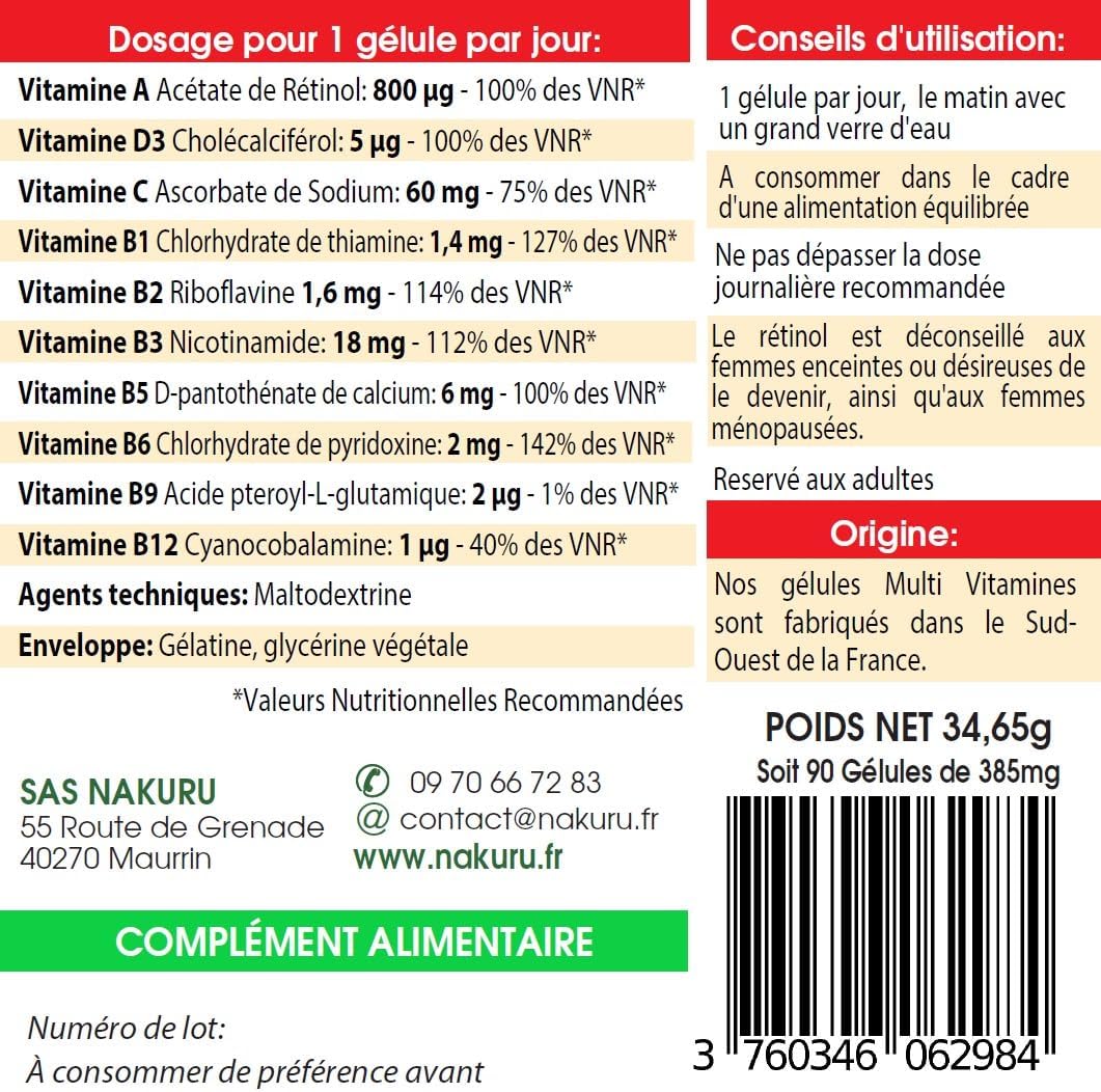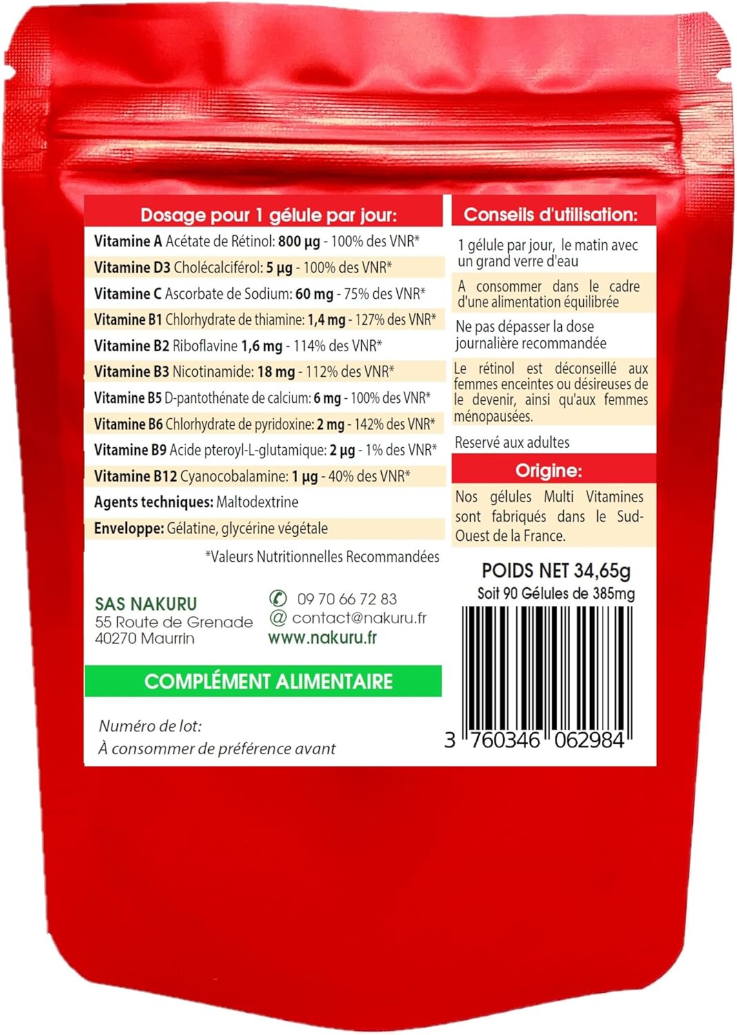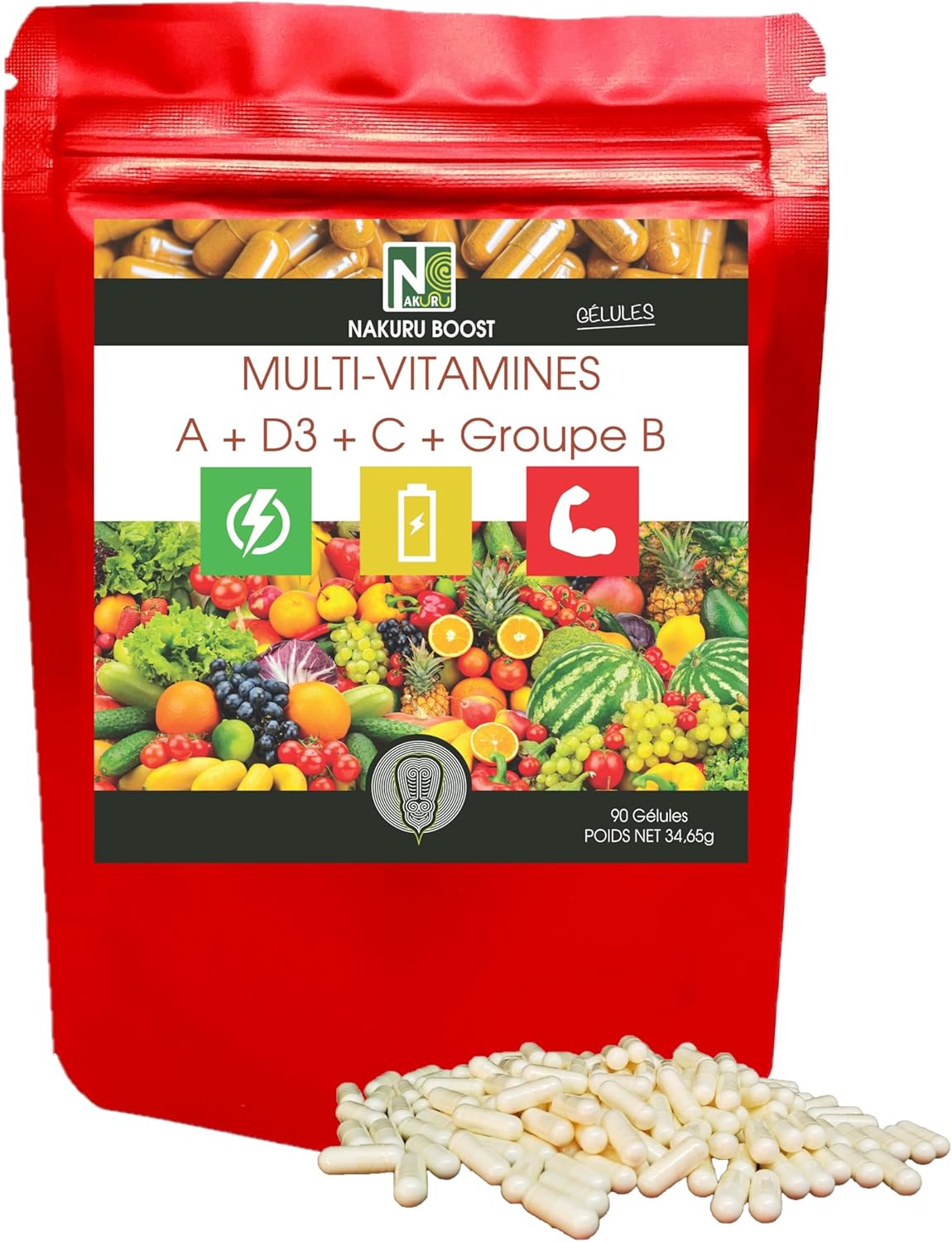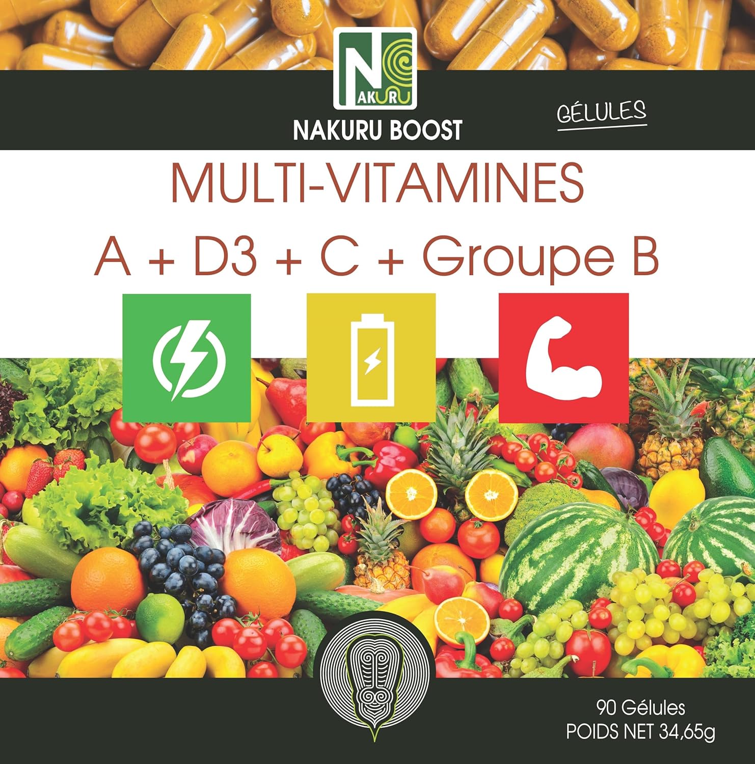 NAKURU | Multi-Vitamins | Boost Range | Made in France | Vitamin A + D3 + C + Group B (90 Capsules of 385mg / Net Weight: 34.5g)
