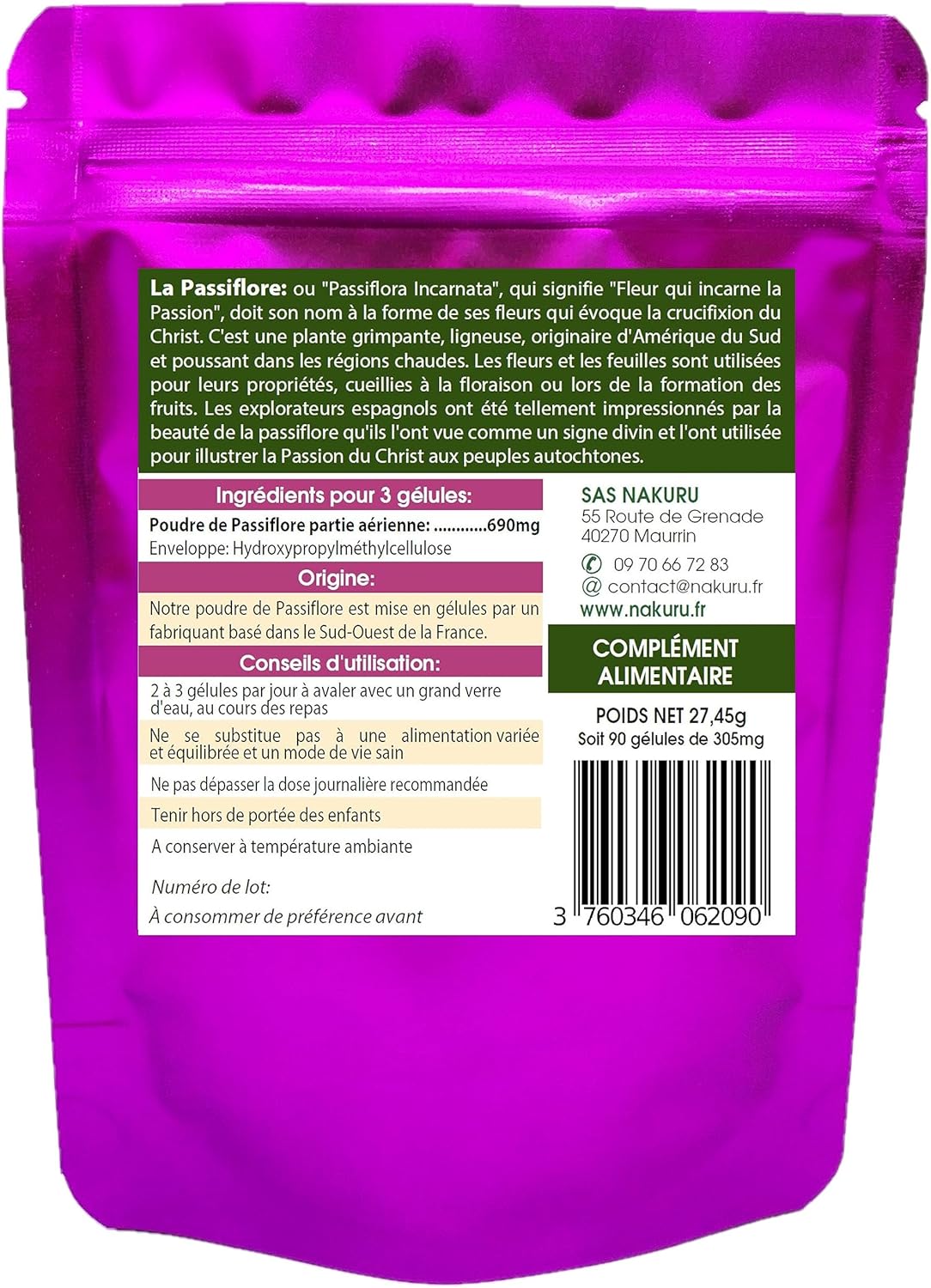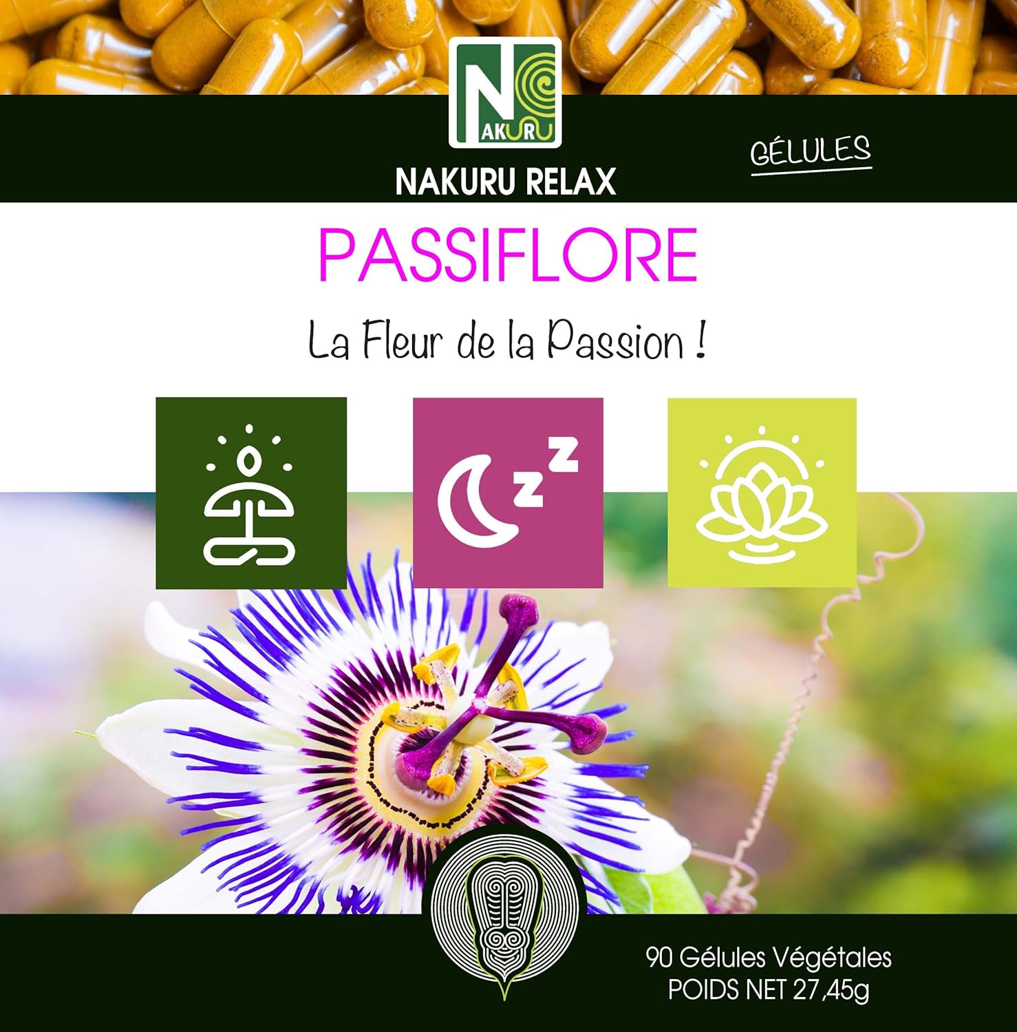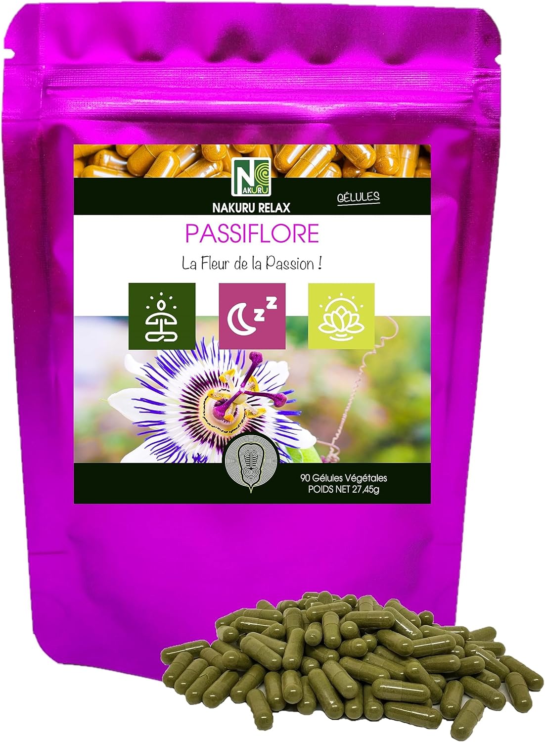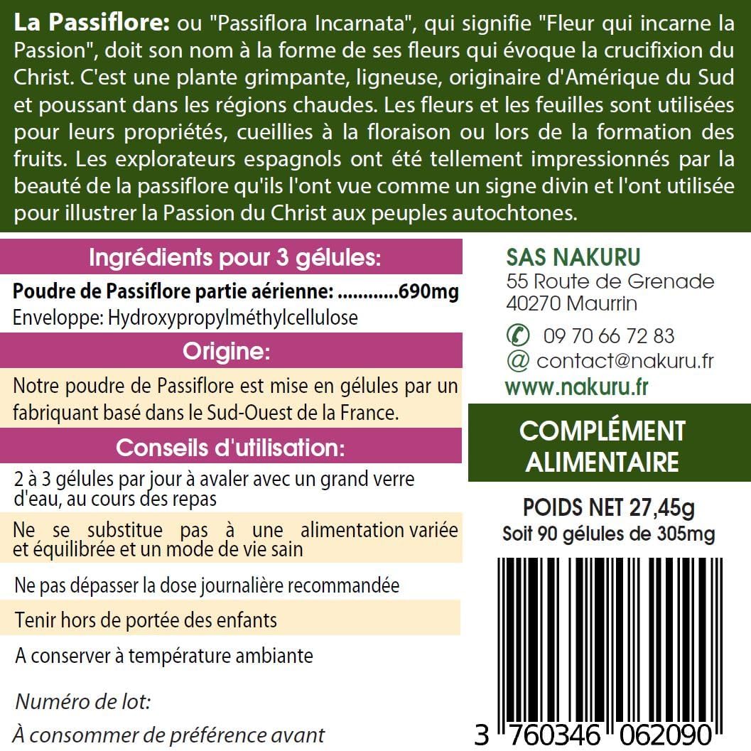 NAKURU | Passion Flower | Relax Range | Made in France | “La Fleur de la Passion!” (90 Vegetable Capsules of 305 mg/Net Weight: 27.5 g)