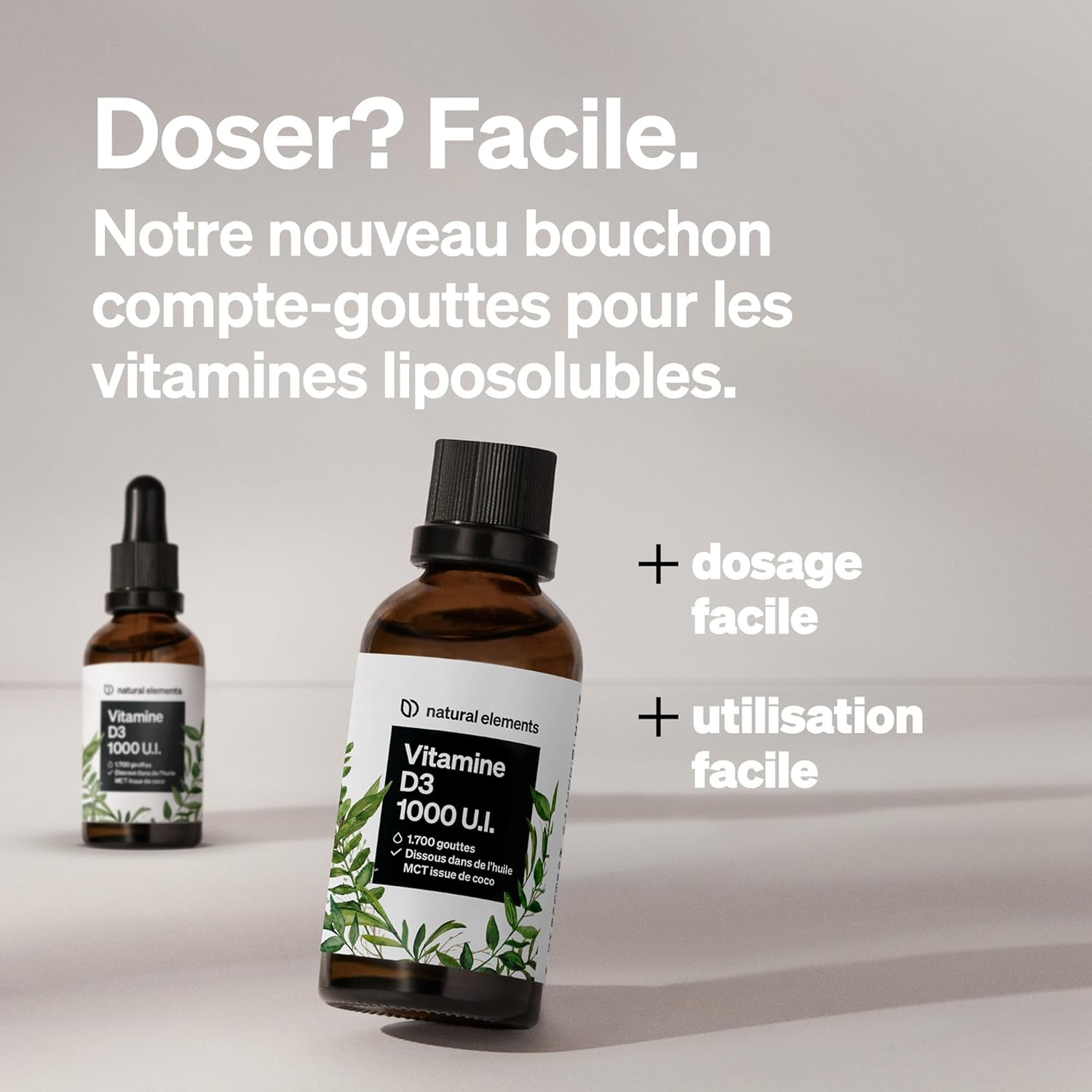 natural elements Vitamin D3 – 1000 IU. Vitamin D per drop – 50 ml (1700 drops) – in coconut TCM oil – highly dosed, liquid