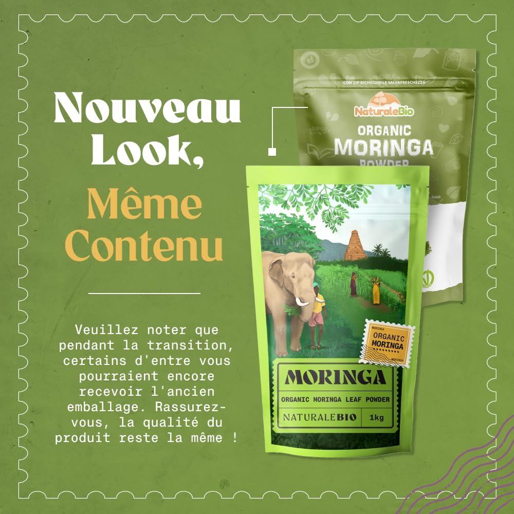 NaturaleBio Moringa Oleifera Organic Powder – Premium Quality – 200 g. Organic, Natural and Pure. Leaves of the Moringa Oleifera Plant.