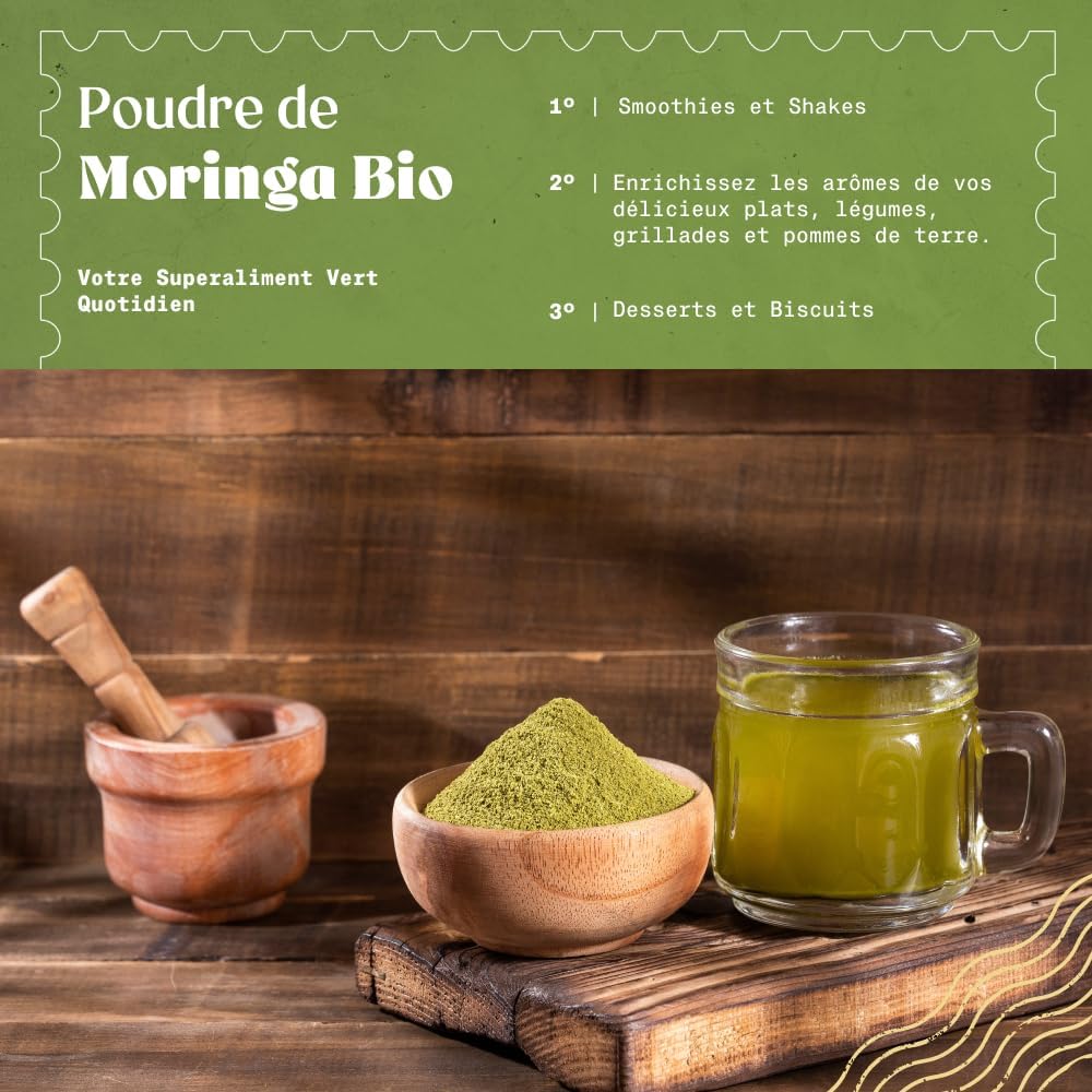 PREMIUM QUALITY: Moringa presents itself as a bright green powder. The drying method that occurs at low temperatures is important to keep all the nutrients in it intact.