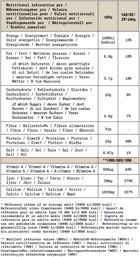 MORINGA PROPERTIES: Moringa is rich in iron which contributes to normal cognitive function, and immune system. Iron contributes to the reduction of fatigue, and the normal transport of oxygen in the body. Rich in fiber and source of vitamins A. Also, Moringa is rich in calcium which contributes to normal muscle function and is necessary for the maintenance of normal teeth and bones.