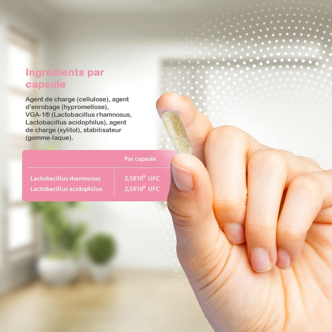With VGA-1: This variety of probiotics has been specially selected for its ability to help cope with bacterial vaginosis. Its oral intake and subsequent absorption through the intestinal walls guarantees maximum efficiency.
