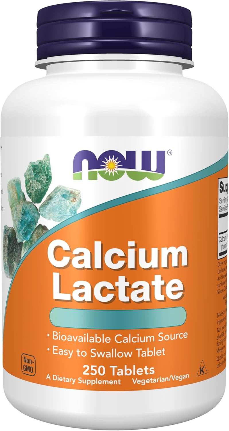 Now Foods, Calcium Lactate (Calcium actate), High Dosed, 250 Vegan Tablets, Lab Tested, Gluten Free, Vegetarian, Non-Soy, Non-GMO