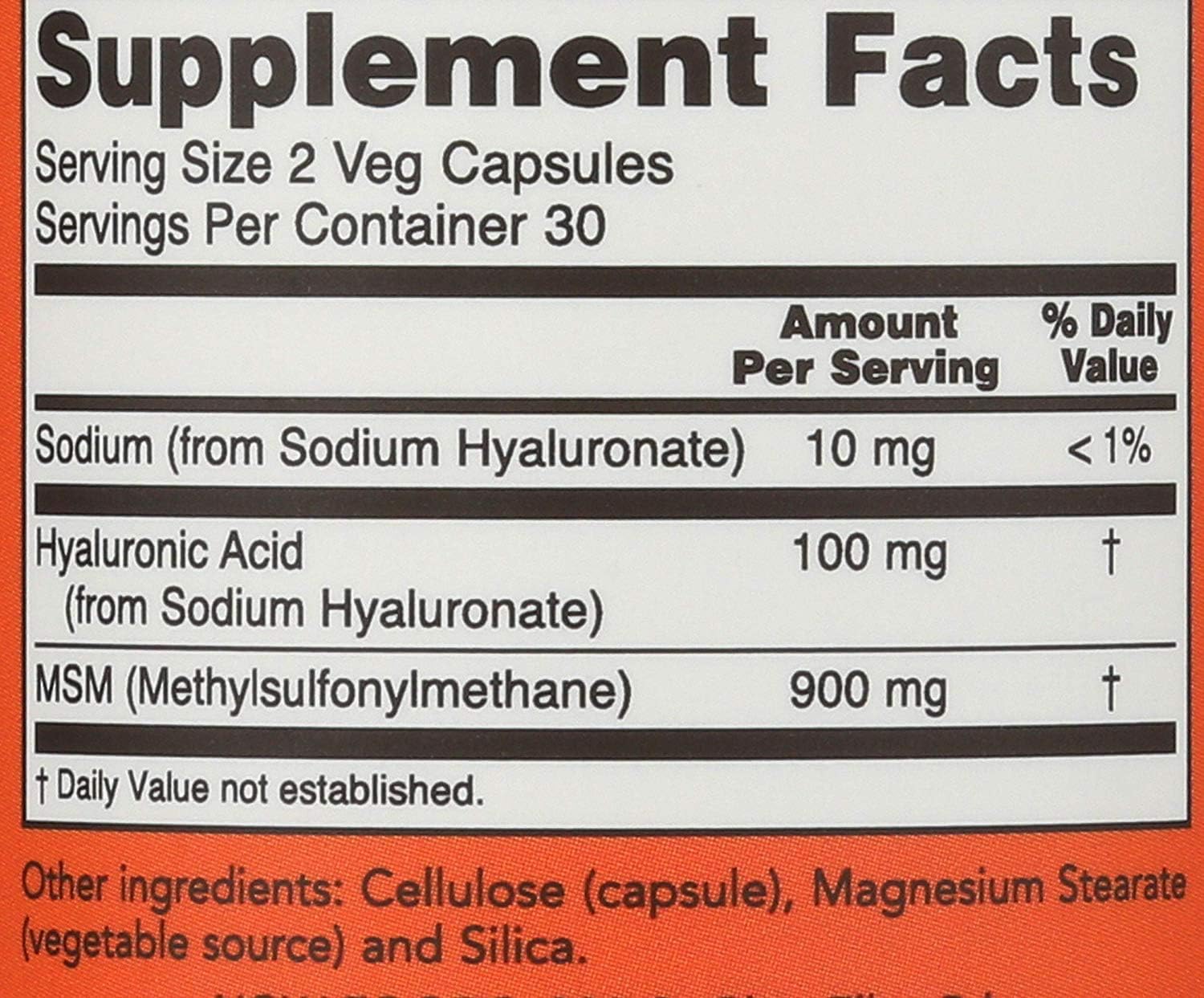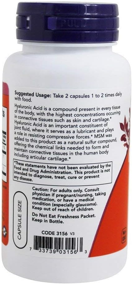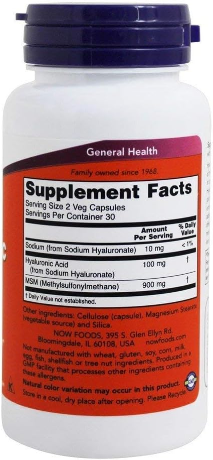 NOW NOW Foods Hyaluronic Acid and Msm, 60 Vcaps (English Manual)