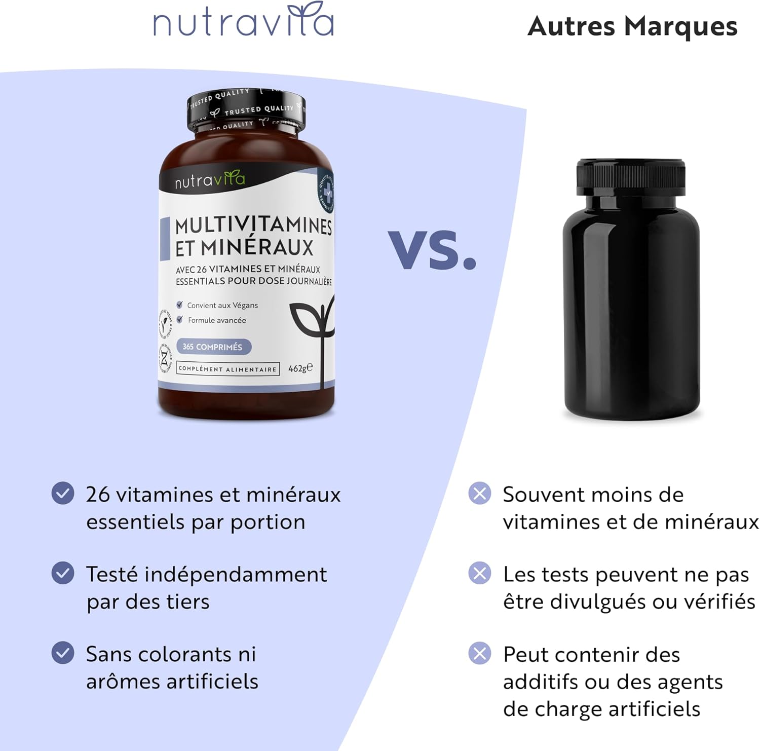 ✔︎ WHY BUY NUTRAVITA MULTIVITAMIN AND MINERAL SUPPLEMENTS? – Our multivitamin tablets for men and women are accompanied by 26 carefully selected vitamins and active minerals to accompany you every day. In addition, our supplement is supplied with a fantastic stock for 12 months. Each of the 365 Vegan tablets contains the benefits of the 26 essential active vitamins and minerals.
