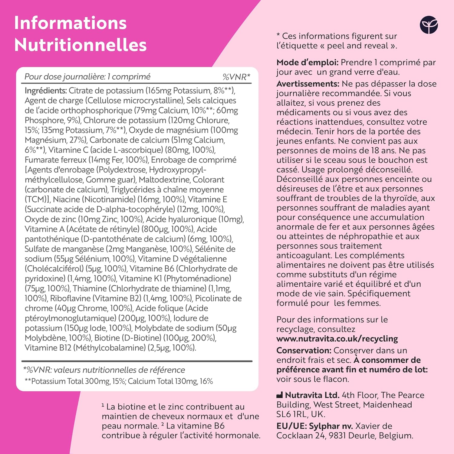 Nutravita Multivitamins & Minerals for Women – 24 Essential Active Vitamins & Minerals Including Biotin & Hyaluronic Acid – 180 Vegan Tablets