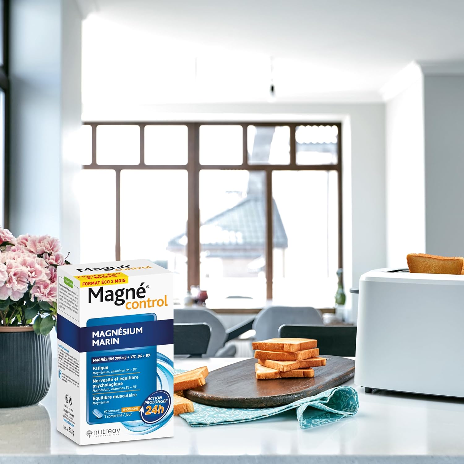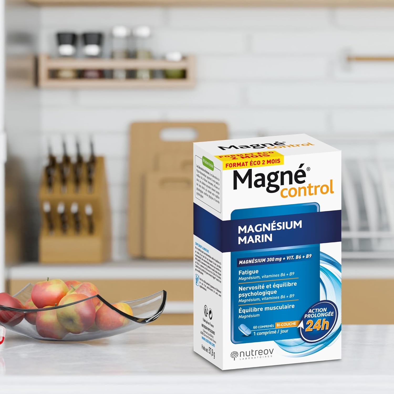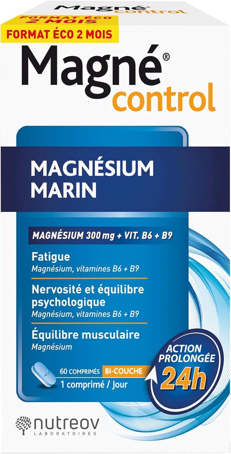NUTREOV – Magnesium Control – Fatigue, Nervousness and Muscle Balance – Food Supplement with Marine Magnesium and Vitamins – Made in France – 60 Tablets