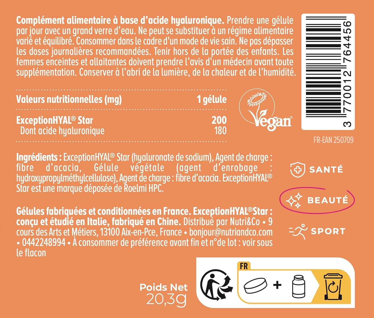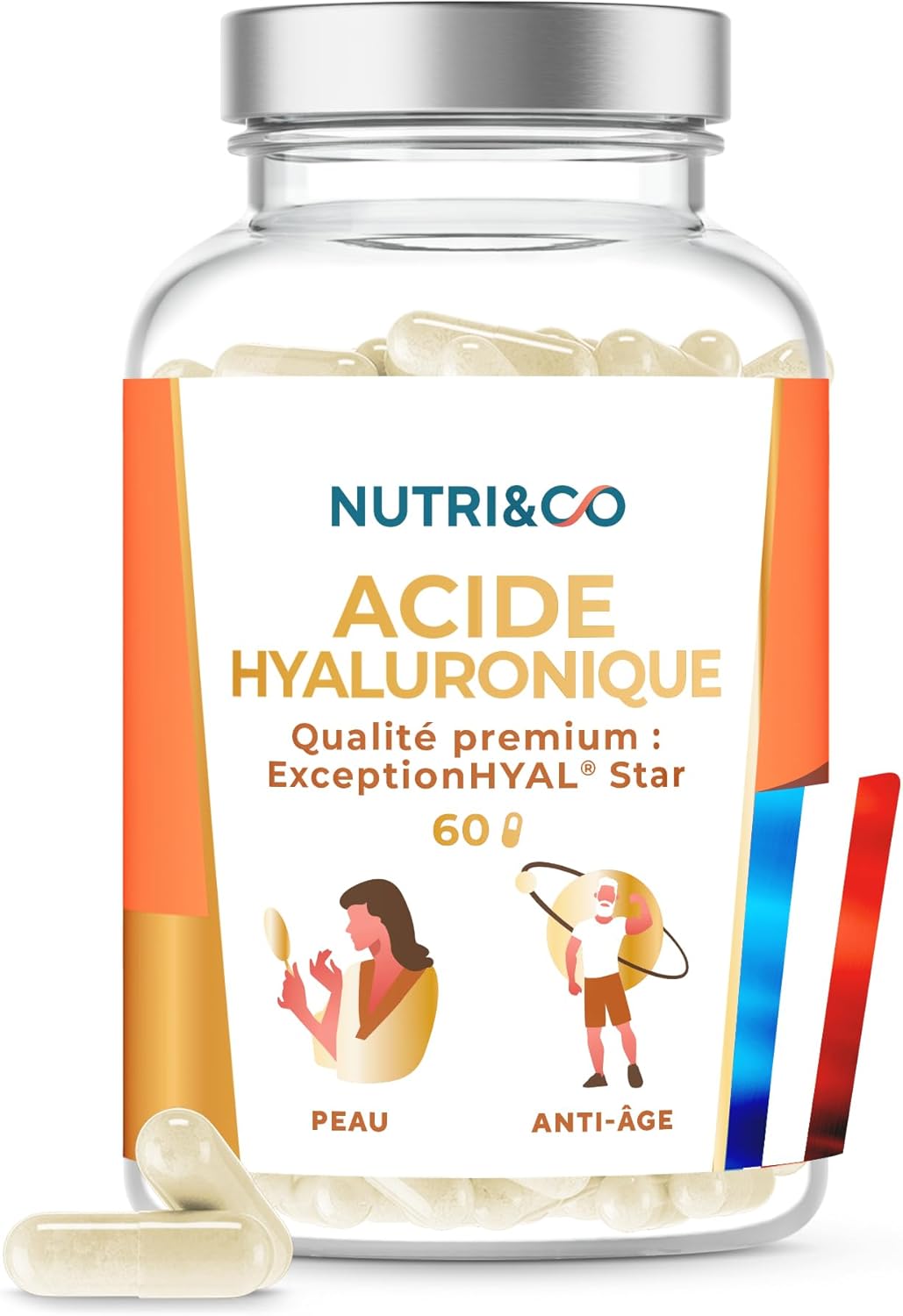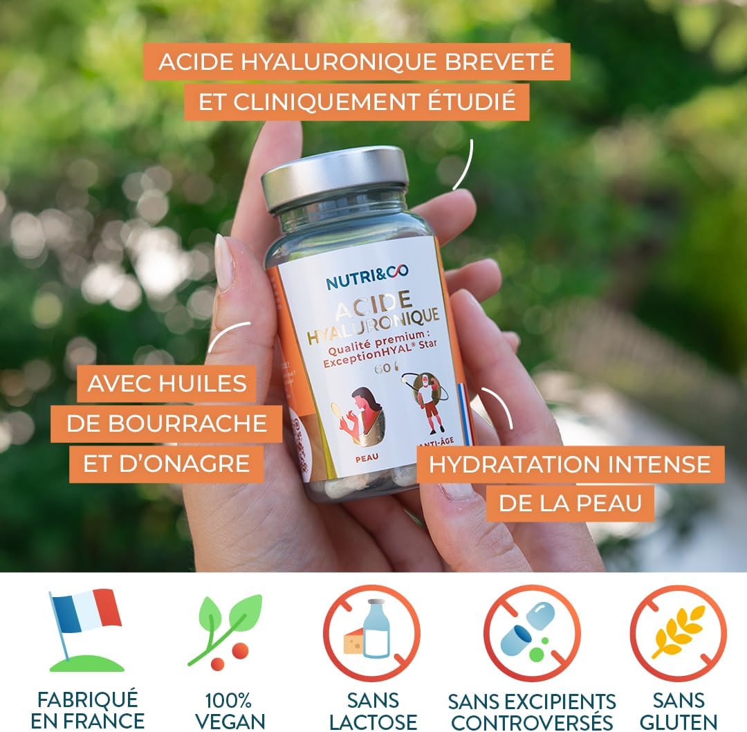NUTRI & CO Hyaluronic Acid + Evening Primrose Oil and Borage – Effective Anti-Aging & Anti-Wrinkle Formula – Deep Moisturises – Hydration and Elasticity of the Skin – 60 Vegan Capsules Made in France