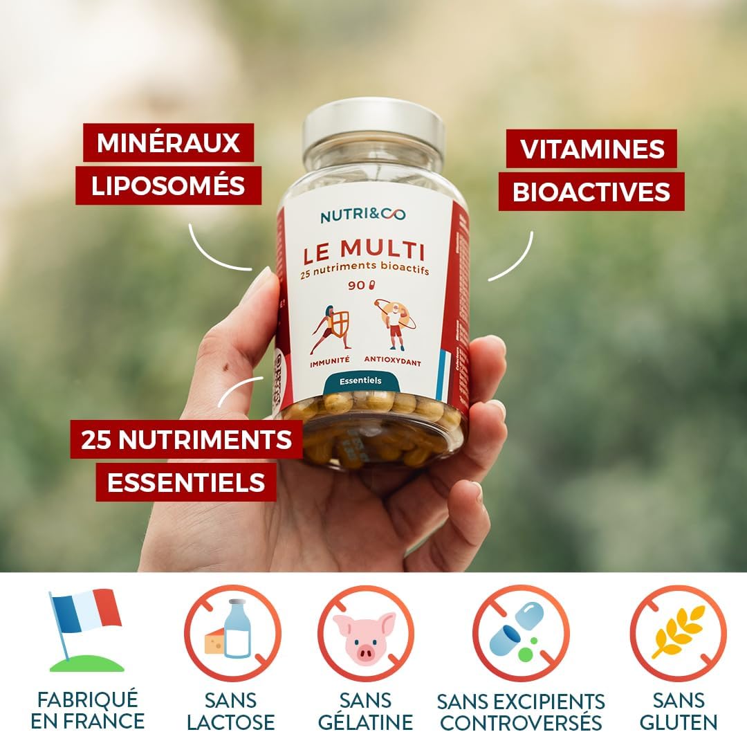 NUTRI & CO Multivitamins and Minerals 25 Nutrients – Vitamins A B C D3 E K2 + Minerals Including Magnesium and Zinc – High Absorption – 90 Vegan Friendly Capsules Packaged in France