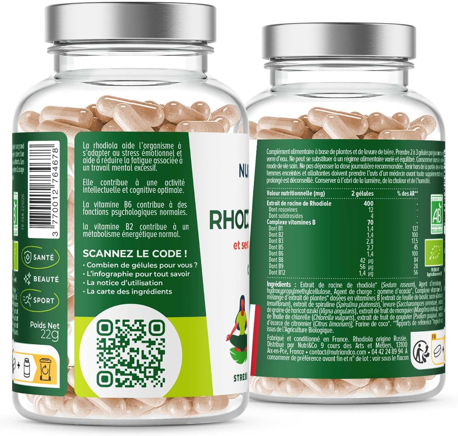⚡️ VITAMIN B COMPLEX – For a complete action on mental well-being, our organic rhodiola rosea extract is combined with a unique complex of B vitamins certified organic. It is composed of vitamin B1, vitamin B6 and vitamin B12 to target psychological functions and act on the body’s balance in the face of stress, anxiety and sleep better.