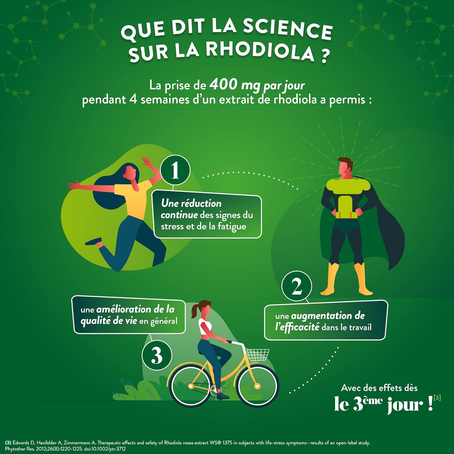 Natural anti-stress – Rhodiola is an adaptogenic plant (such as ashwagandha or ginseng), traditionally known for its mental health benefits. Our Rhodiola Bio formula has been designed for better stress management by the body and to target harm on the brain sphere (fatigue, anxiety, memory, mood and emotional disorders, etc.).