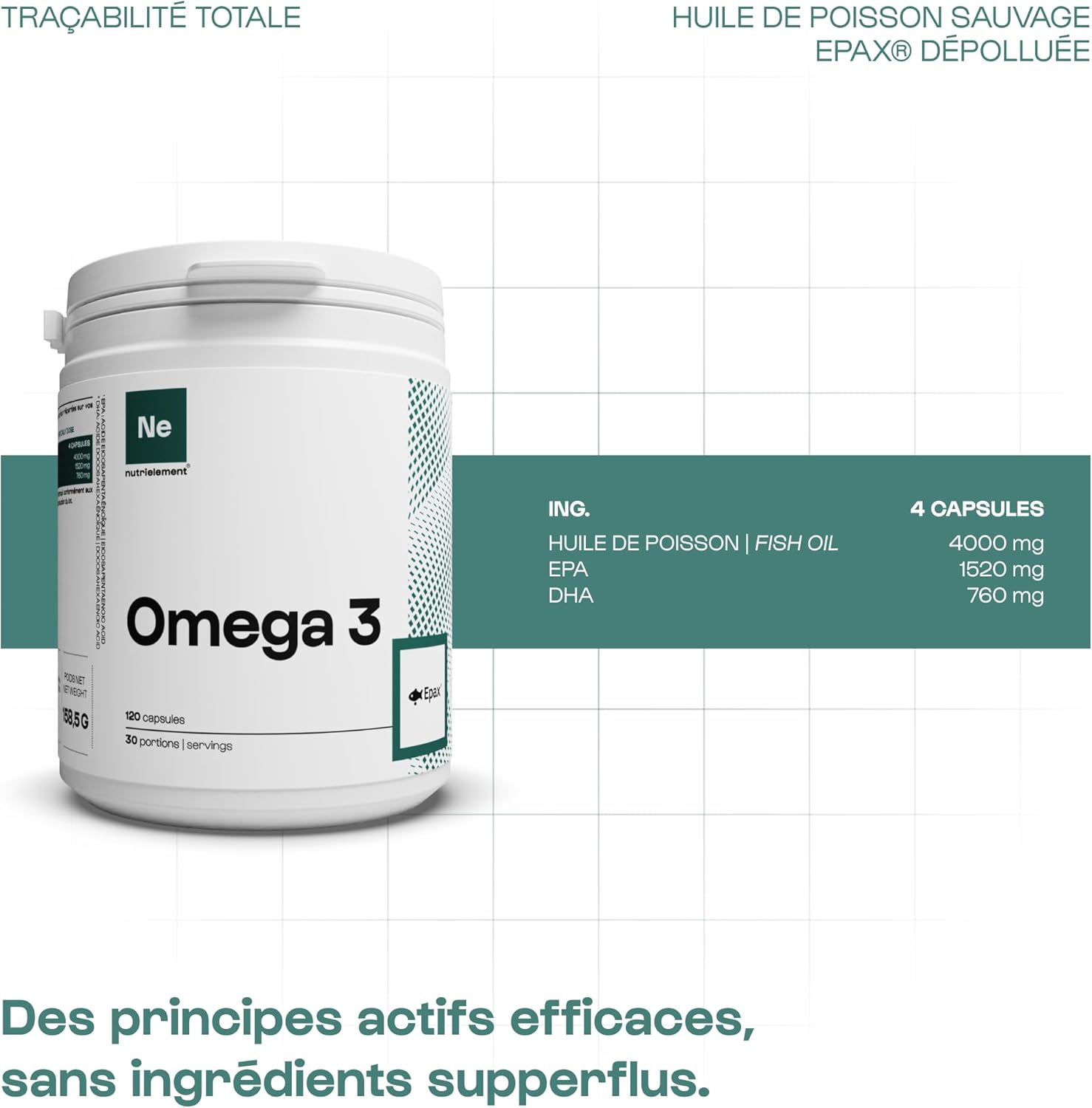 Nutrielement – Omega 3 Epax® 4000mg – 120 capsules – Balance EPA 1520mg & DHA 760mg – Wild Fish Oil – Sustainable Peach – Ultra Low Oxidation Index | By Nutrimuscle