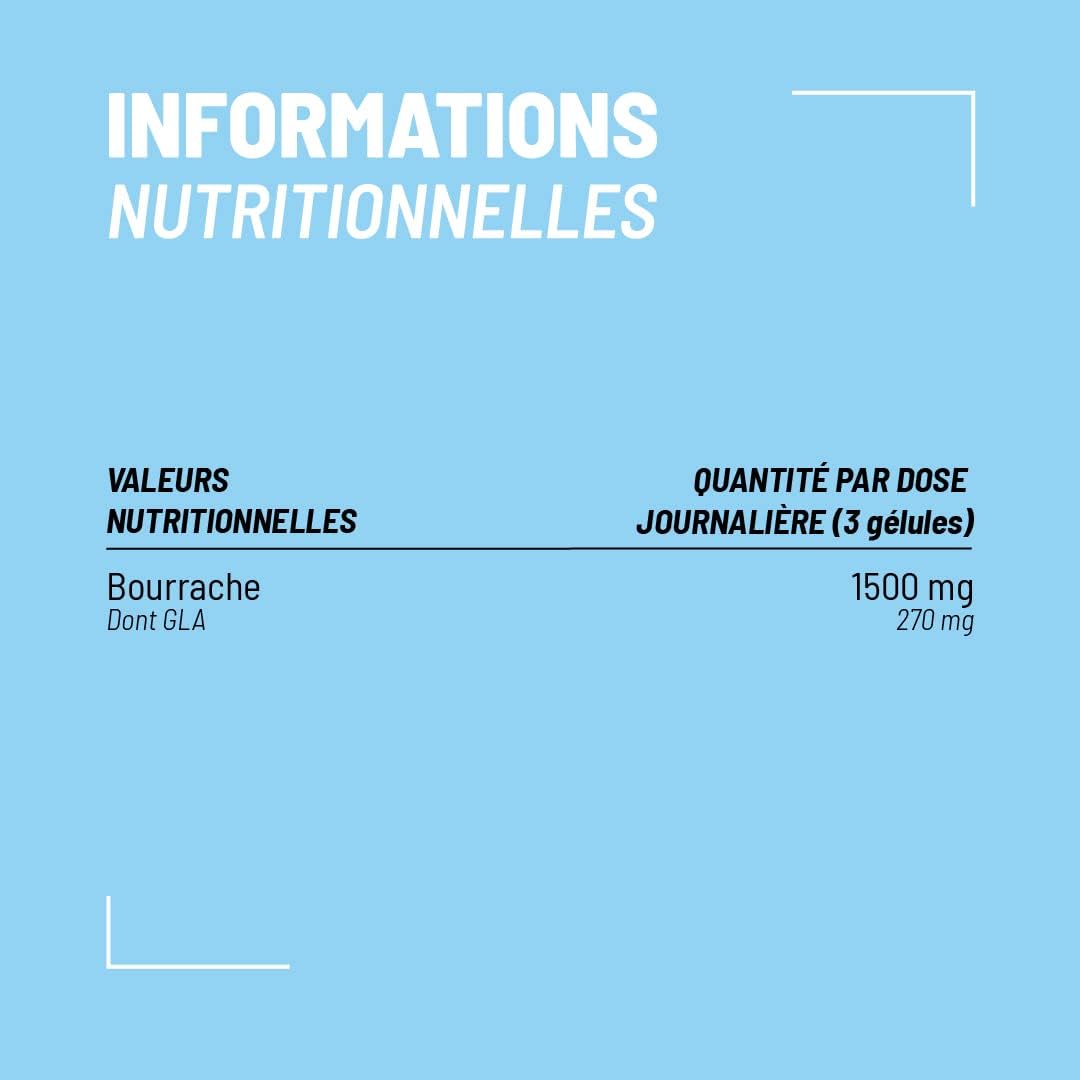 Rich in Omega 6 GLA Gamma Linolenic acid is little present in our diet and our body does not know how to make it. The supplementary intake makes it possible to counterbalance the GLA deficiencies and rebalance the intake of Omega 6 AL too present in the industrial diet.