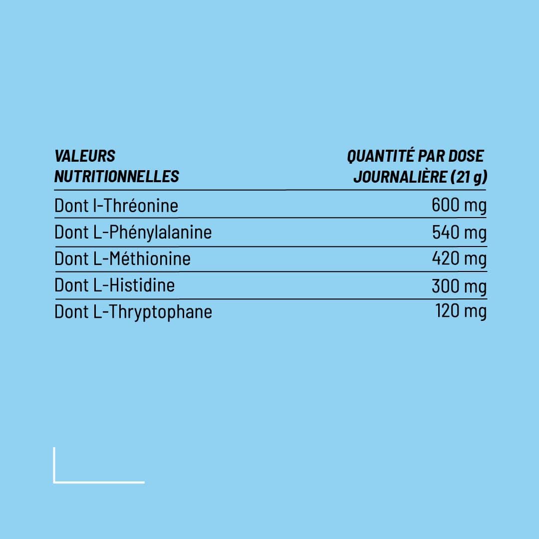 BCAA and EAA: Pure Workout is the first French pre workout with BCAA and EAA to reduce your mental and physical fatigue during your intensive workouts. The combination of BCAAs with EAA provides your body with amino acids that it does not know how to synthesize. This intake of amino acids will help you recover post-workout in addition to energy gain. BCAAs are branched amino acids and EAA are essential amino acids