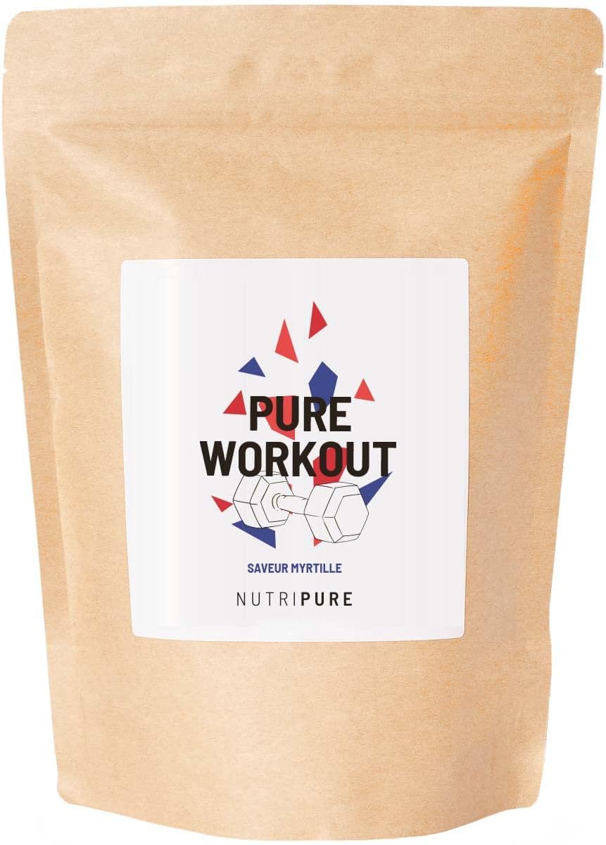 Nutripure | Pure Workout | Dietary Supplement | Pre Workout without Caffeine | EAA, BCAA, Citrulline Kyowa, Beta Alanine CarnoSyn, Tyrosine | Natural Blueberry Flavour | 15 x 21g | Made in France