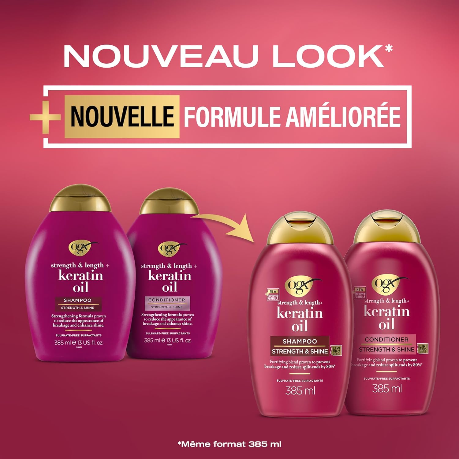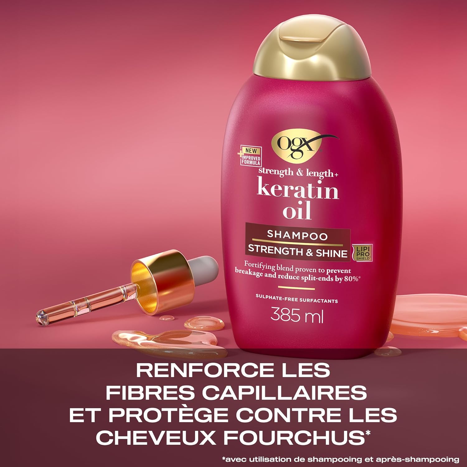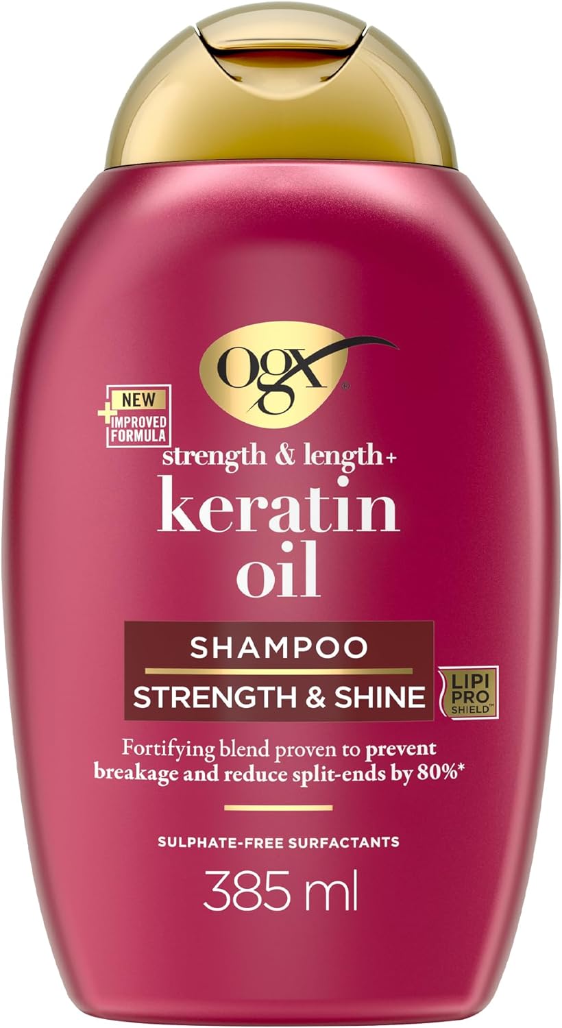 Hair Strengthening: Strengthen and fortify your hair with OGX Strength & Length Keratin Oil Shampoo, designed to resist breakage caused by brushing and styling.