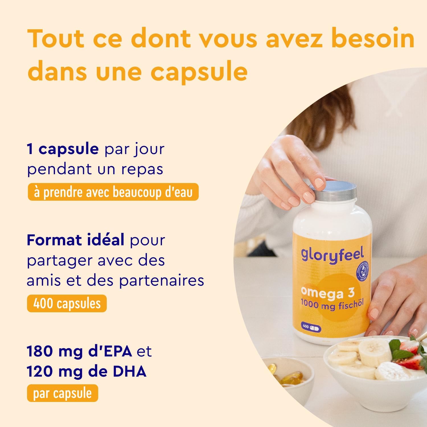 Que ce soit le matin ou le soir, prenez votre gélule gloryfeel Omega 3 au moment qui vous convient le mieux. Le mieux est de le prendre avec un repas.