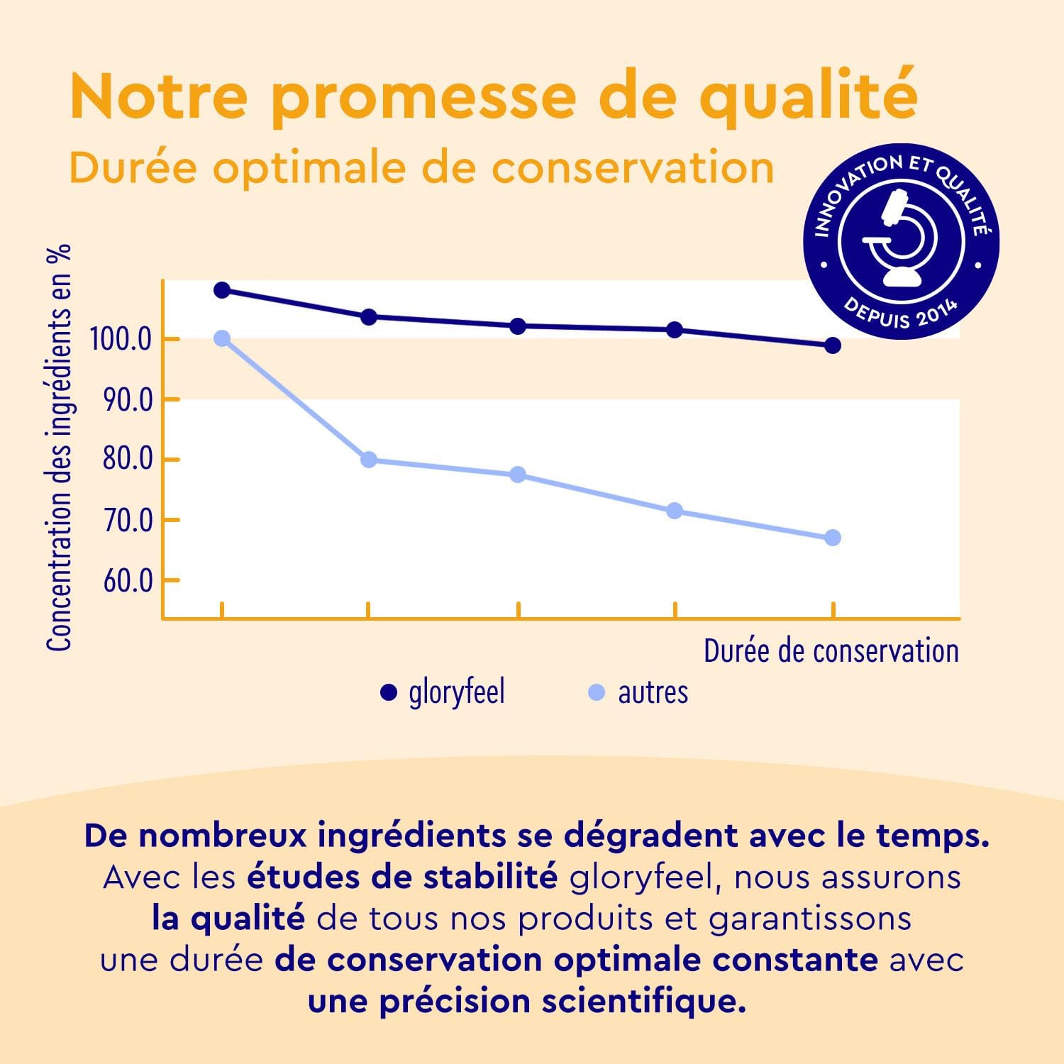 New standards of quality and stability – gloryfeel products are manufactured in Germany and undergo extensive stability tests to maintain a consistent quality over a long period of time. Our commitment to exceed industry standards underscores our leadership position in quality assurance. Discover our certificates of analysis for more transparency and trust. Keep out of reach of children and not recommended for children under 6 years old.