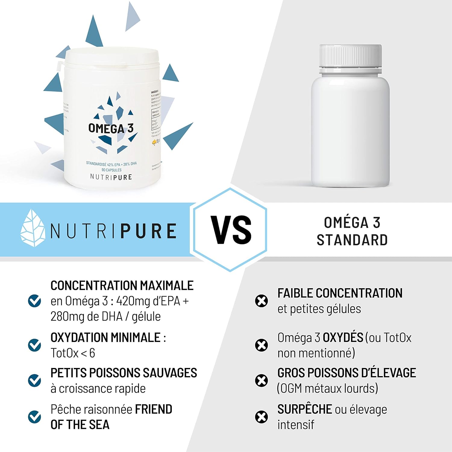 MADE IN FRANCE: Nutripure food supplements are made in France and are non-GMO. Our fish oil is labelled EPAX and Friends of the Sea, guaranteeing eco-responsible fishing and purity superior to current standards. Gluten-free, non-vegan.