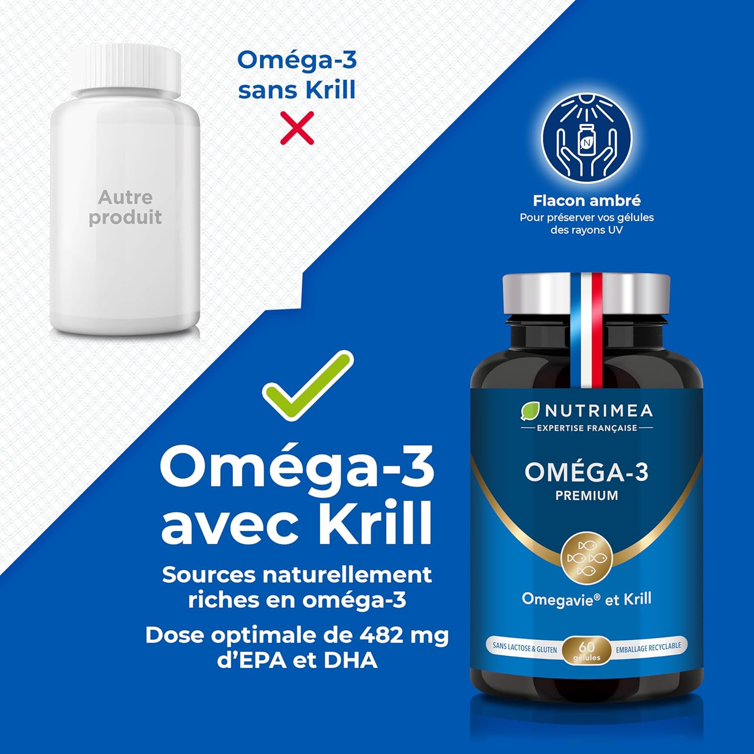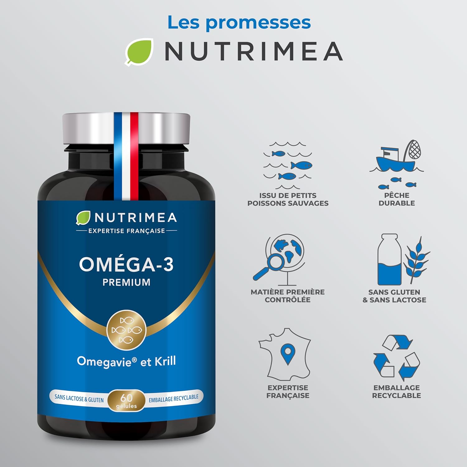 Omega 3 & Antarctic Krill | Patented Omegavie® | Wild Fish Oil | Natural Antioxidant | Cognition & Immune System | Astaxanthin Concentrate | Made in France | Nutrimea