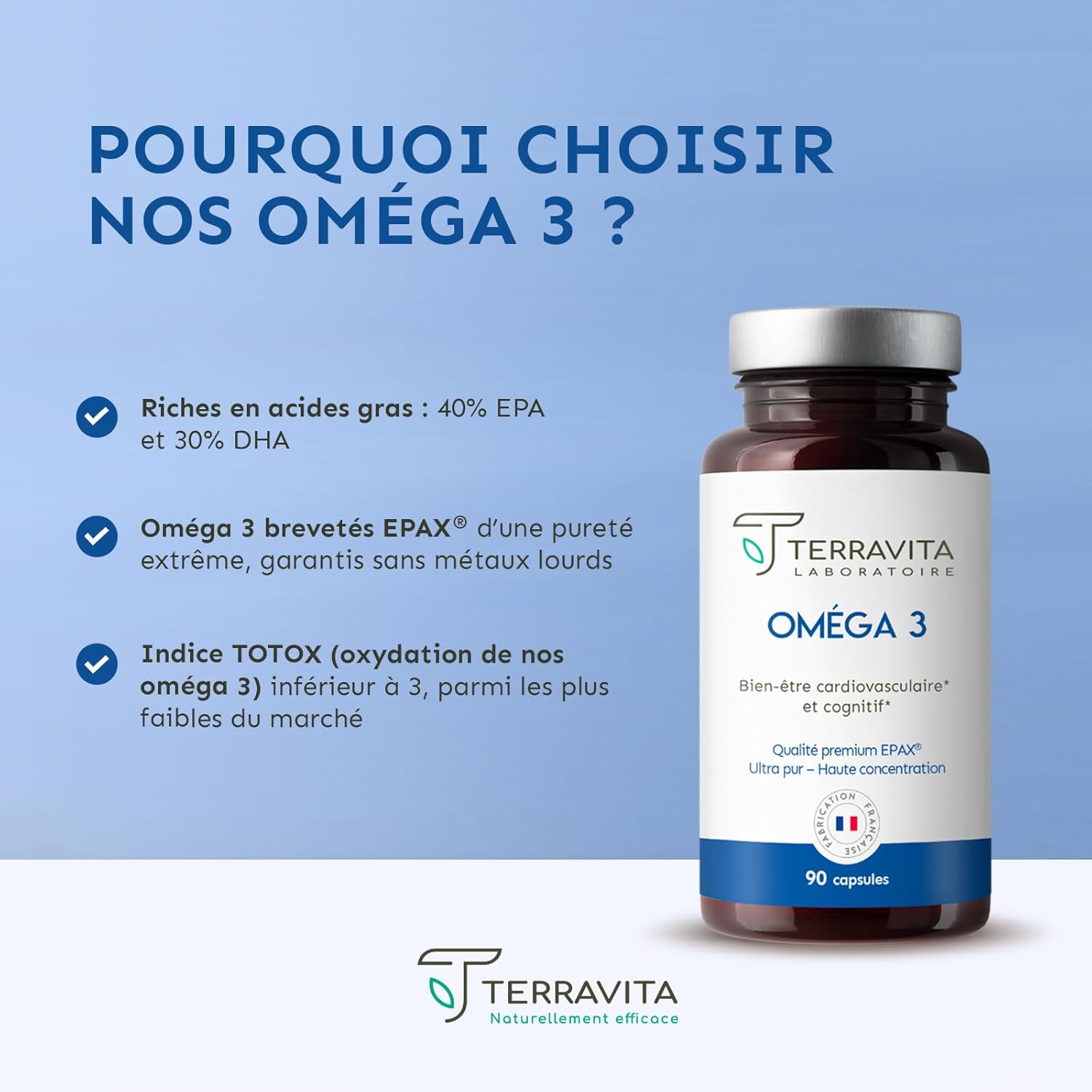 PREMIUM QUALITY ●● Terravita has selected EPAX patented Omega 3 to give you the best possible quality. EPAX is the world leader in concentrated omega-3 fatty acids. Our oil is the most concentrated in omega-3 essential fatty acids, 40% EPA and 30% DHA, allowing for optimal digestive tolerability.