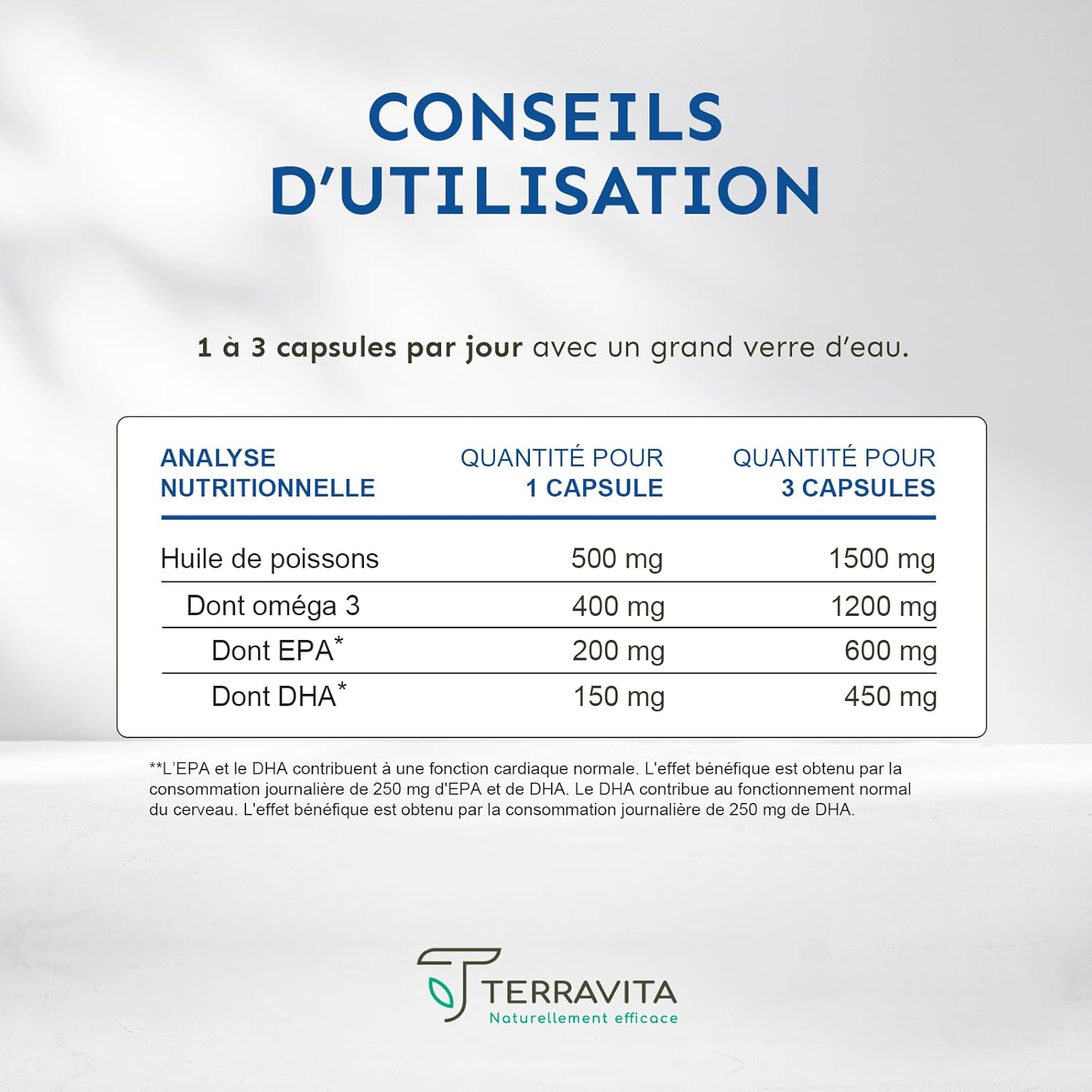 🛡️ AMBER BOTTLE ●● To enjoy the benefits of omega 3, you just need to take 3 capsules a day. Thanks to the patented XO stabilisation process, our capsules have no fishy smell or taste and have excellent oxidation resistance (totox index inf. to 3). Preservation is enhanced by our amber bottle, preserving the oil from sunlight. With 90 softgels, our bottle contains 1 month of cure.