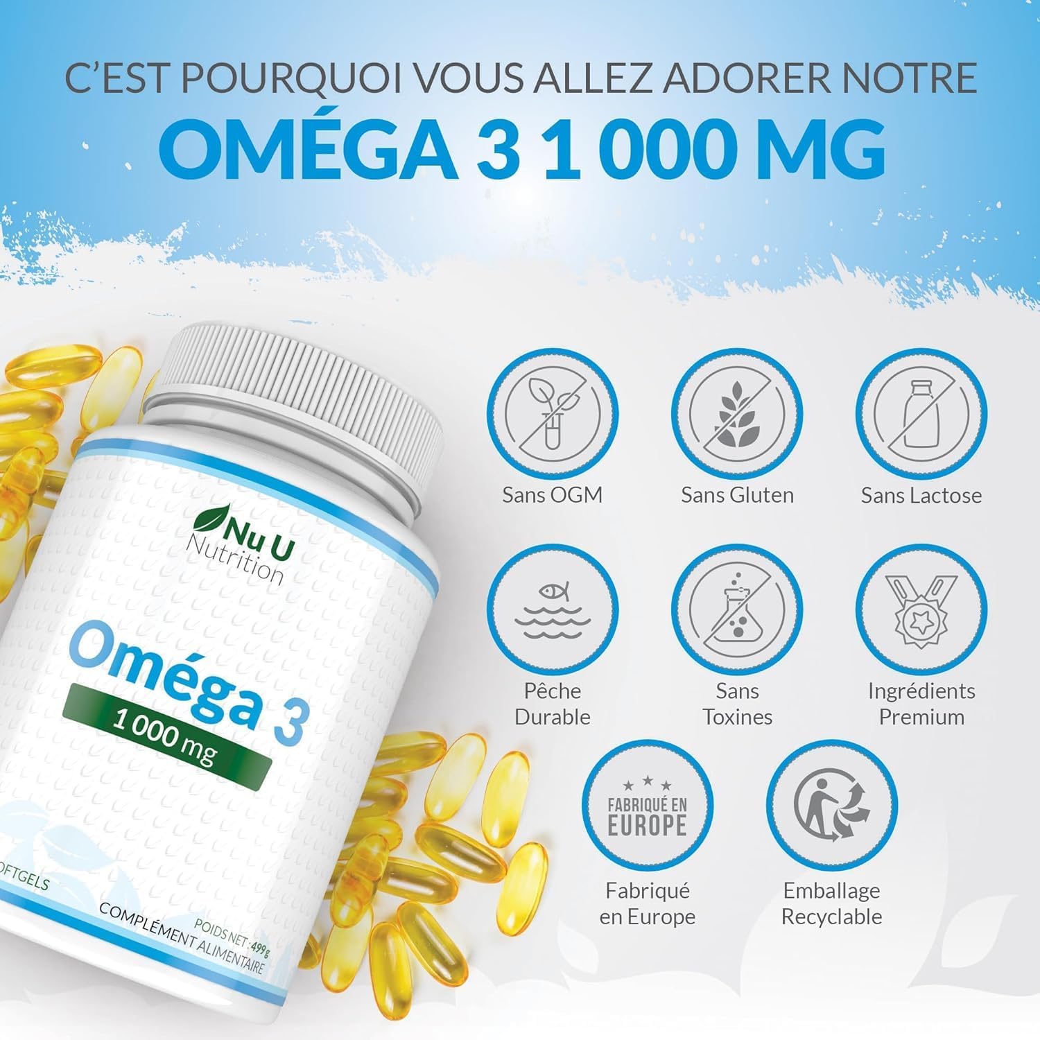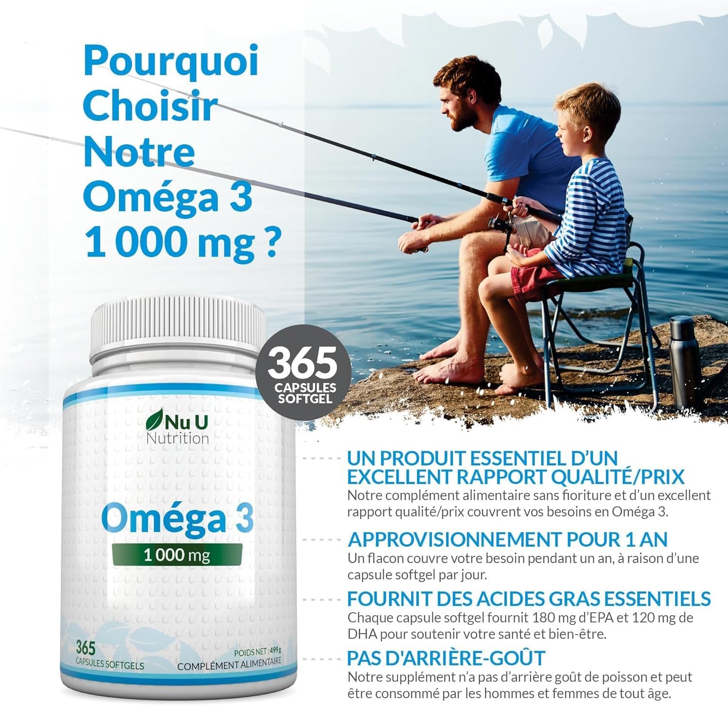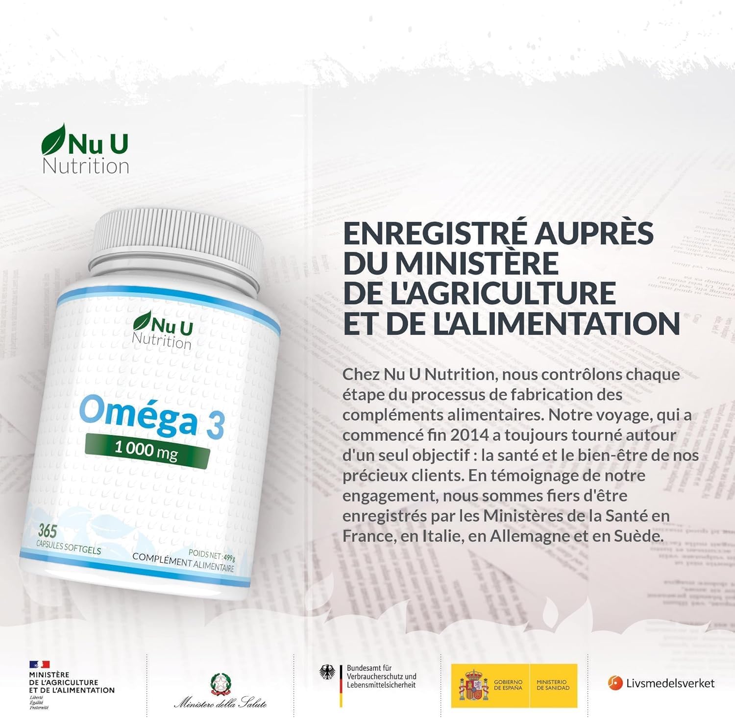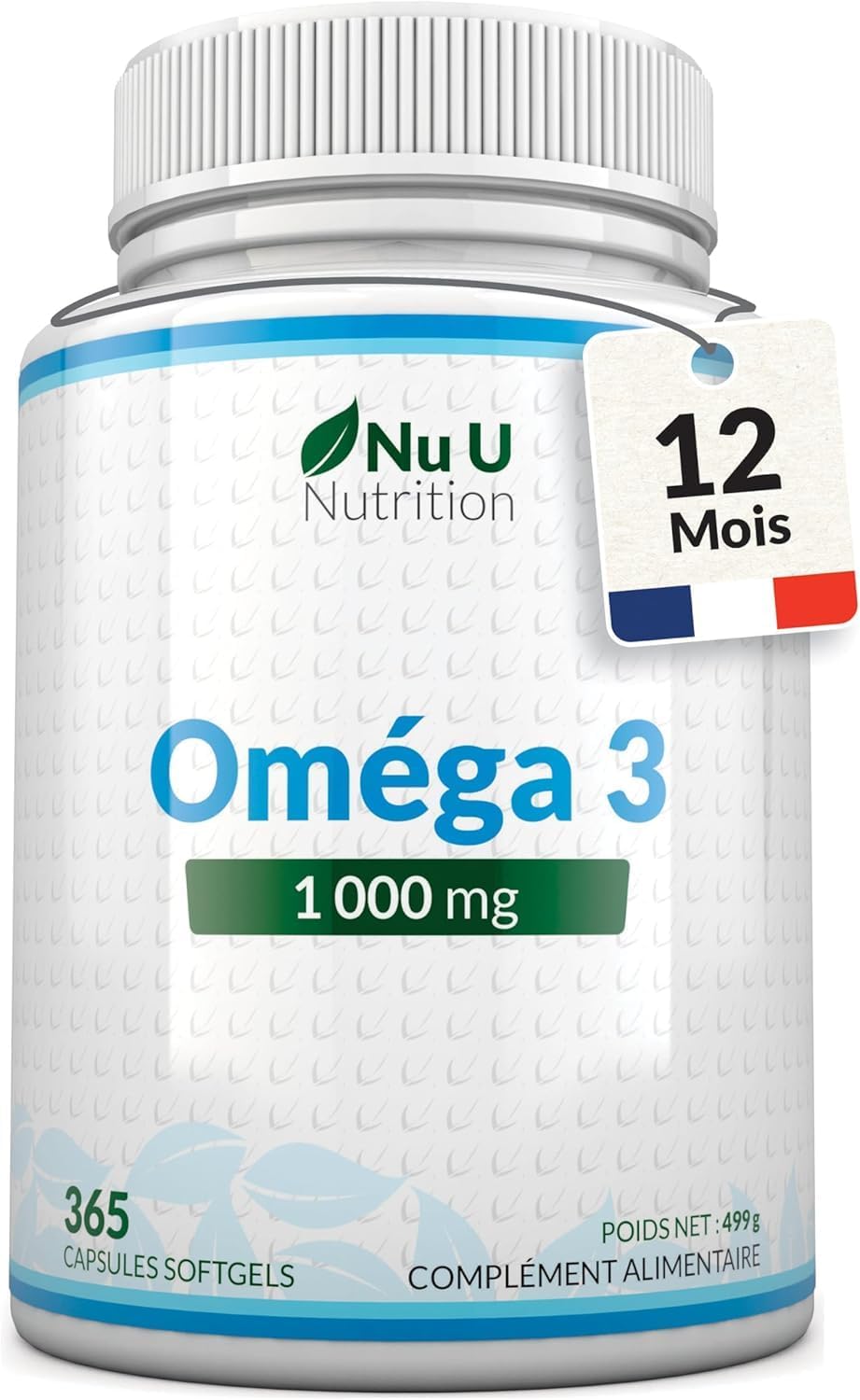 Omega 3 Fish Oil 1000 mg – Fish Oil – 365 Capsules – 1 Year Cure – Rich in EPA 540mg and DHA 360mg – Dietary Supplements Nu U Nutrition