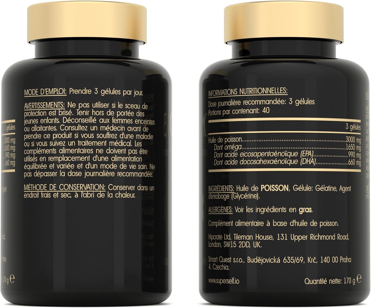 HIGH EPA & DHA CONTENT – Not all omega 3 is equal. The human body finds docosahexaenoic acid (DHA) and eicosapentaenoic acid (EPA) particularly useful. Unlike most supplements on the market, SuperSelf Omega 3 capsules contain a high dose of EPA (990mg per serving) and DHA (660mg). Sourced from sustainable sources, fish oil is filtered to remove impurities.