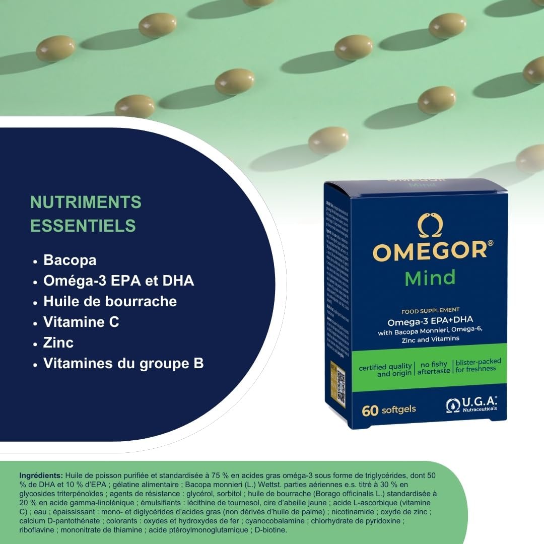 OMEGOR Mind – Supplement for Memory and Congnitive Functions – Omega 3 DHA and Bacopa Monnieri Extract, Borage Oil, Zinc and B Vitamins (60 Capsule)