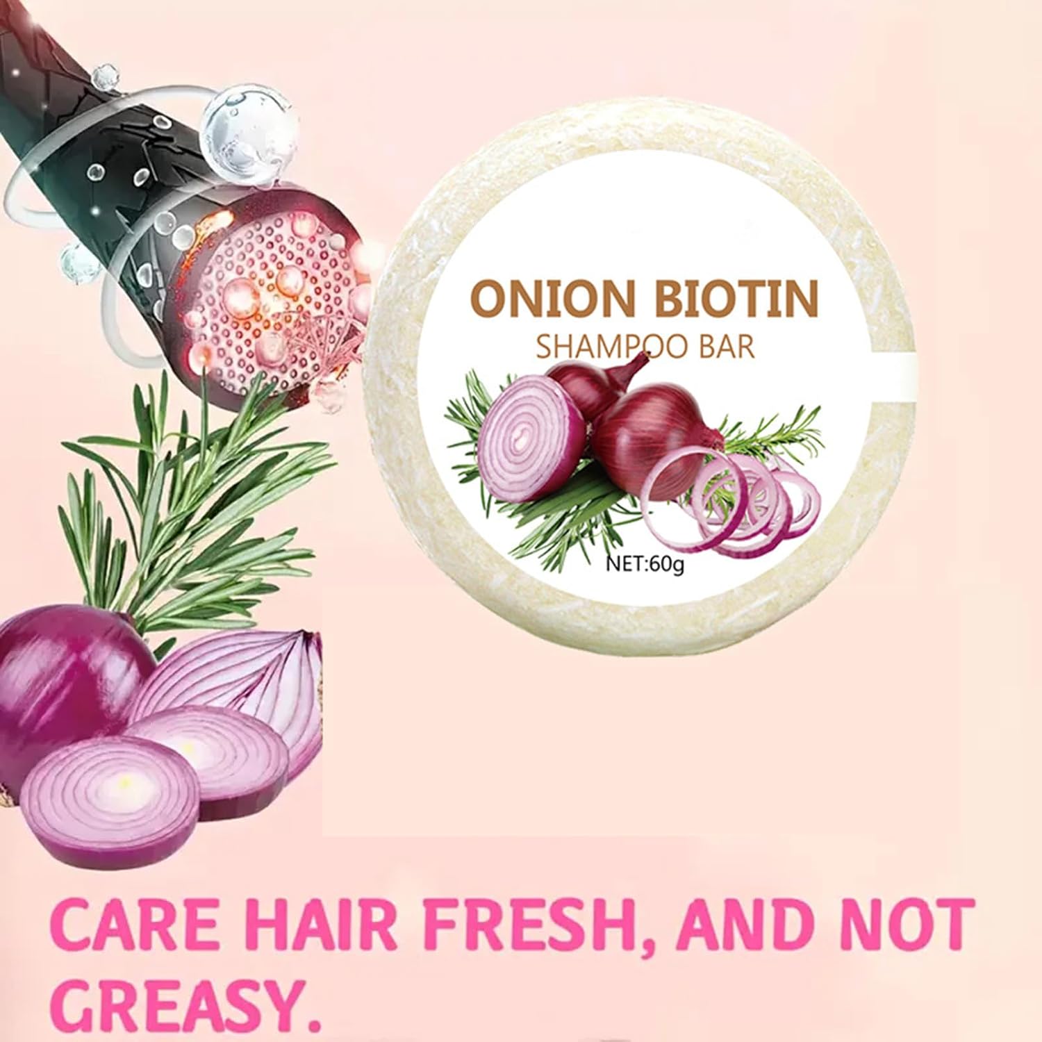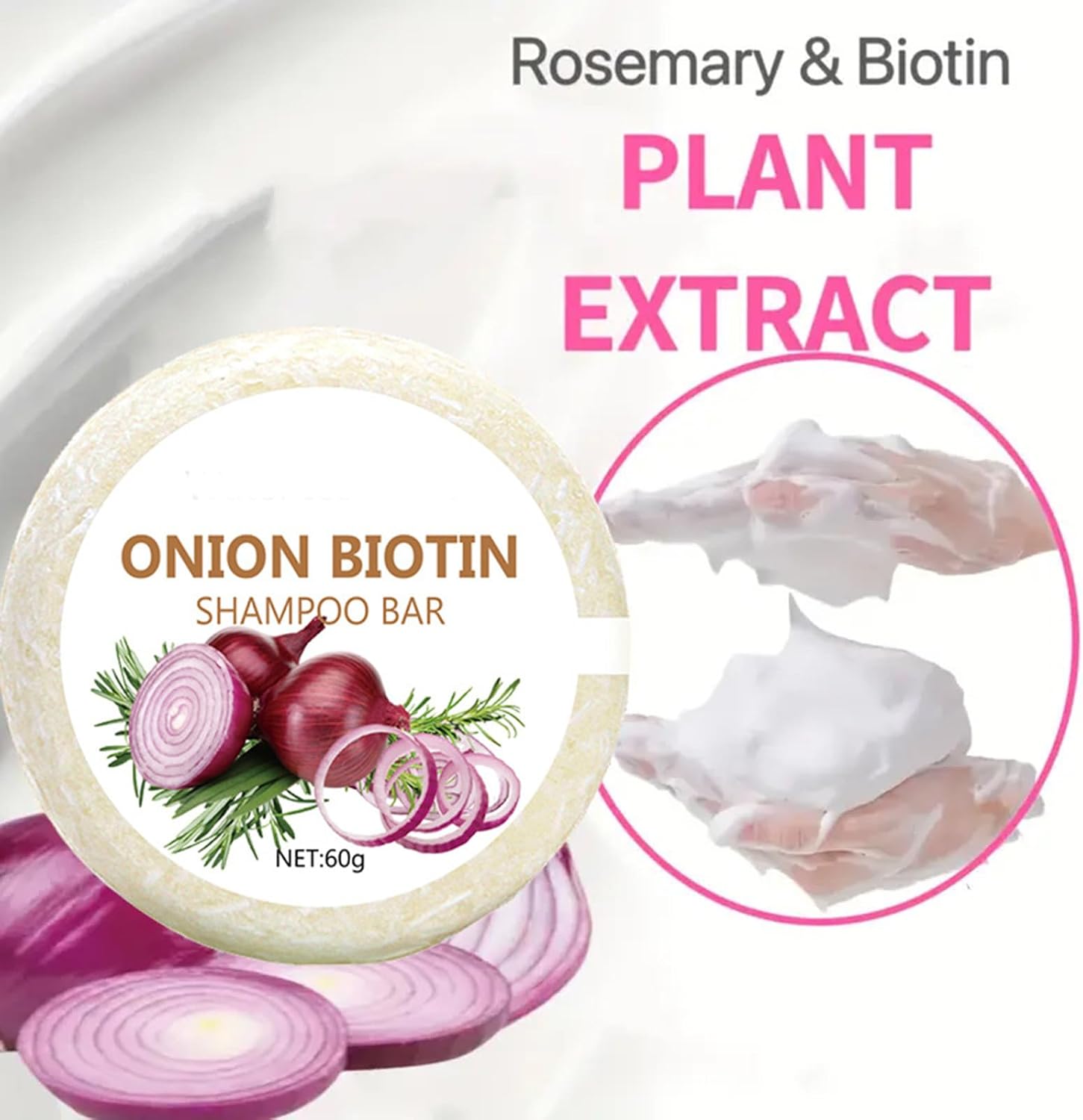 Onion Biotin Shampoo Bar 60 g, Natural Onion Biotin Shampoo Bar, Moisturizing Onion Shampoo Rosemary Hair Soaps Adult Men Women Teenagers (1PC)