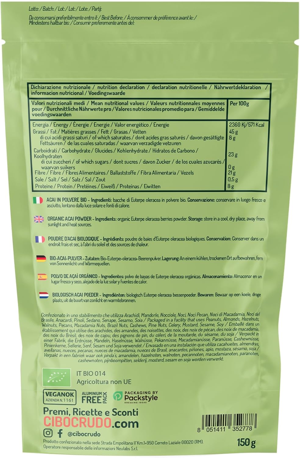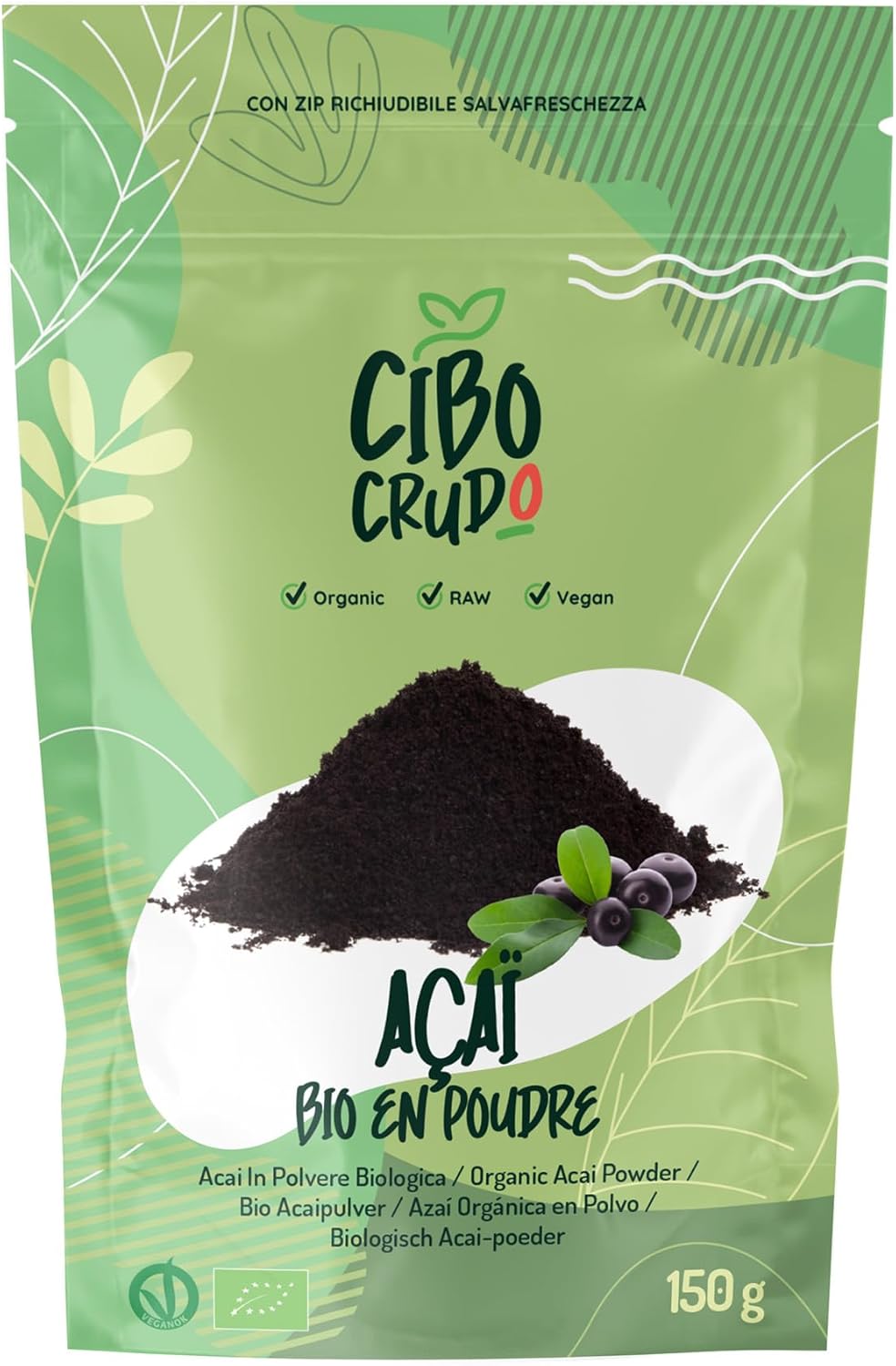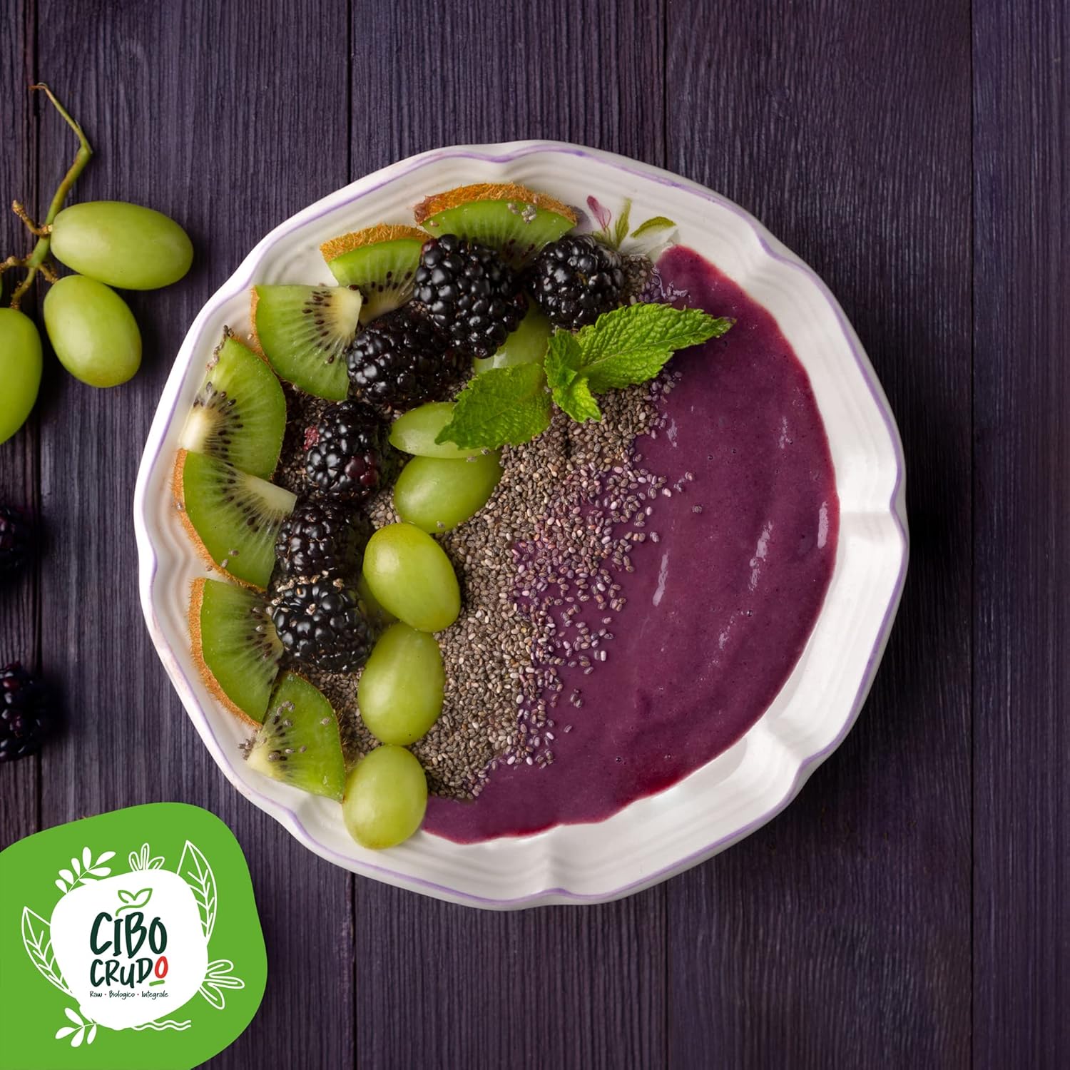 Acai Berries are the fruit of a plant called Euterpe Oleracea. It is a plant of the same family as palm trees and it is native and widespread in the Amazon. CiboCrudo acai is a raw powder product. This acai is grown in certified organic farming, harvested at maturity, dried and processed at low temperatures to not alter its taste and properties. Try the famous acai bowl: freeze tender fruits, like bananas, and mix them in a powerful blender with a touch of vegetable drink and a spoon of acai powder. You can also enrich this bowl with other superfoods like guarana or maca. Add granola and fresh fruit and enjoy your tropical breakfast!