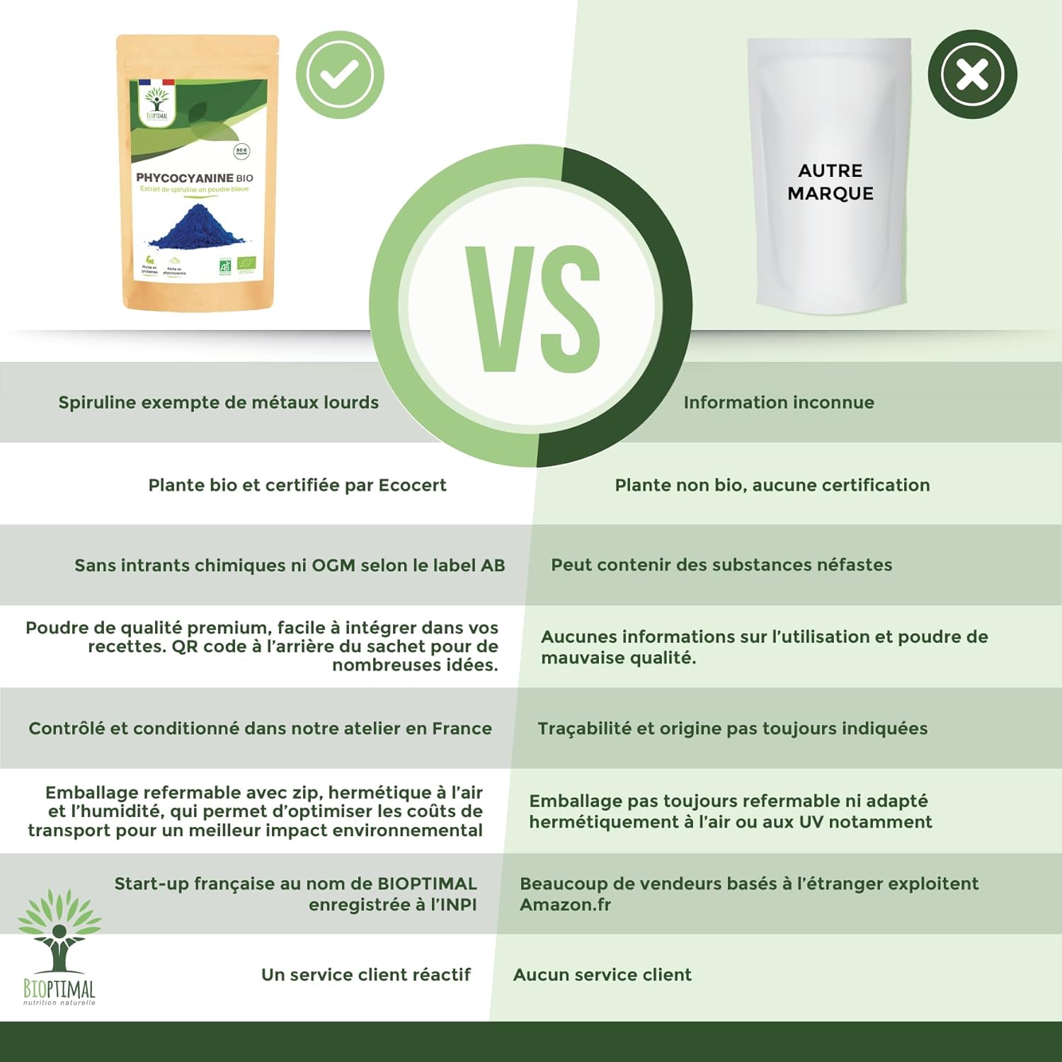 Nous avons créé « Bioptimal nutrition naturelle » car nous sommes convaincus par les bienfaits des plantes et nous pensons que la nature est l’alliée idéale à une vie saine et active.