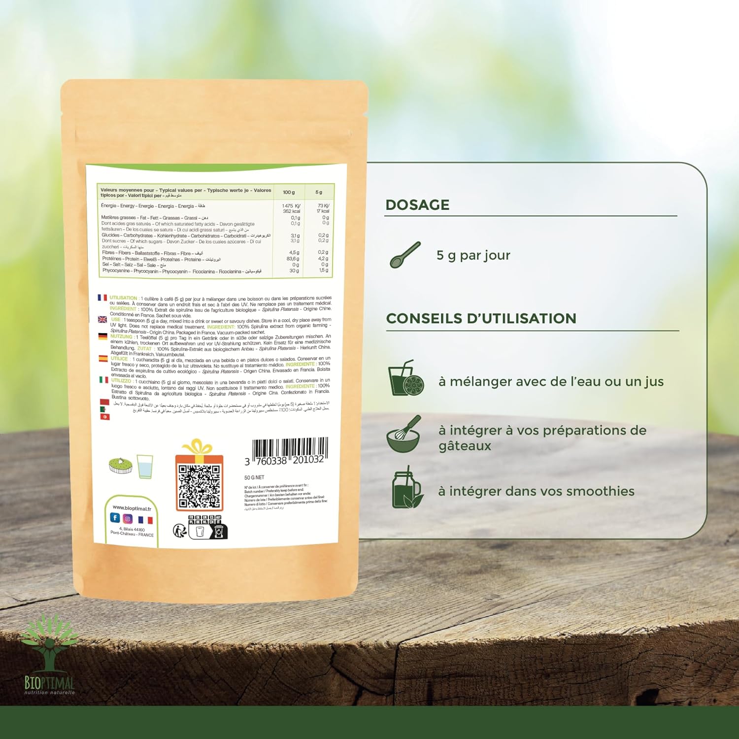 Premium quality + safety: Our spirulina is subjected to rigorous controls in order to provide you with the best food safety. Free of heavy metals and pesticides, it is checked and packaged in our workshop in France by us. Naturally vegan, we offer you the best spirulina extract on the market! The only certified organic farming.