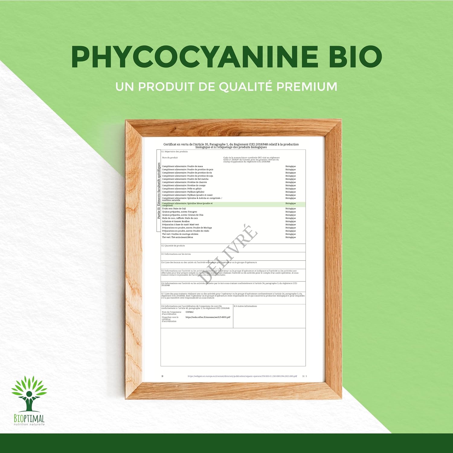 Bioptimal enregistré auprès d’Ecocert n° 44/190075/1186435