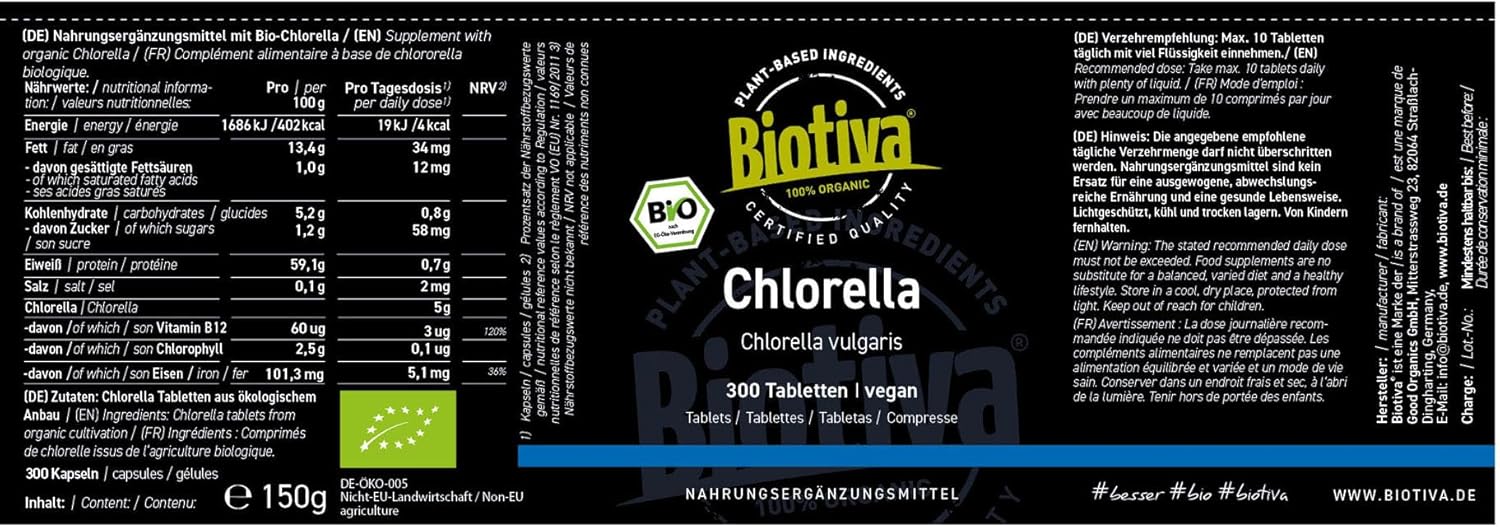 Be the first to review “Organic Chlorella Highly Dosed 300 Tablets – 500mg Tablets – Vegan Chlorella Seaweed Tablets – Packaged and Controlled in Germany – Biotiva”