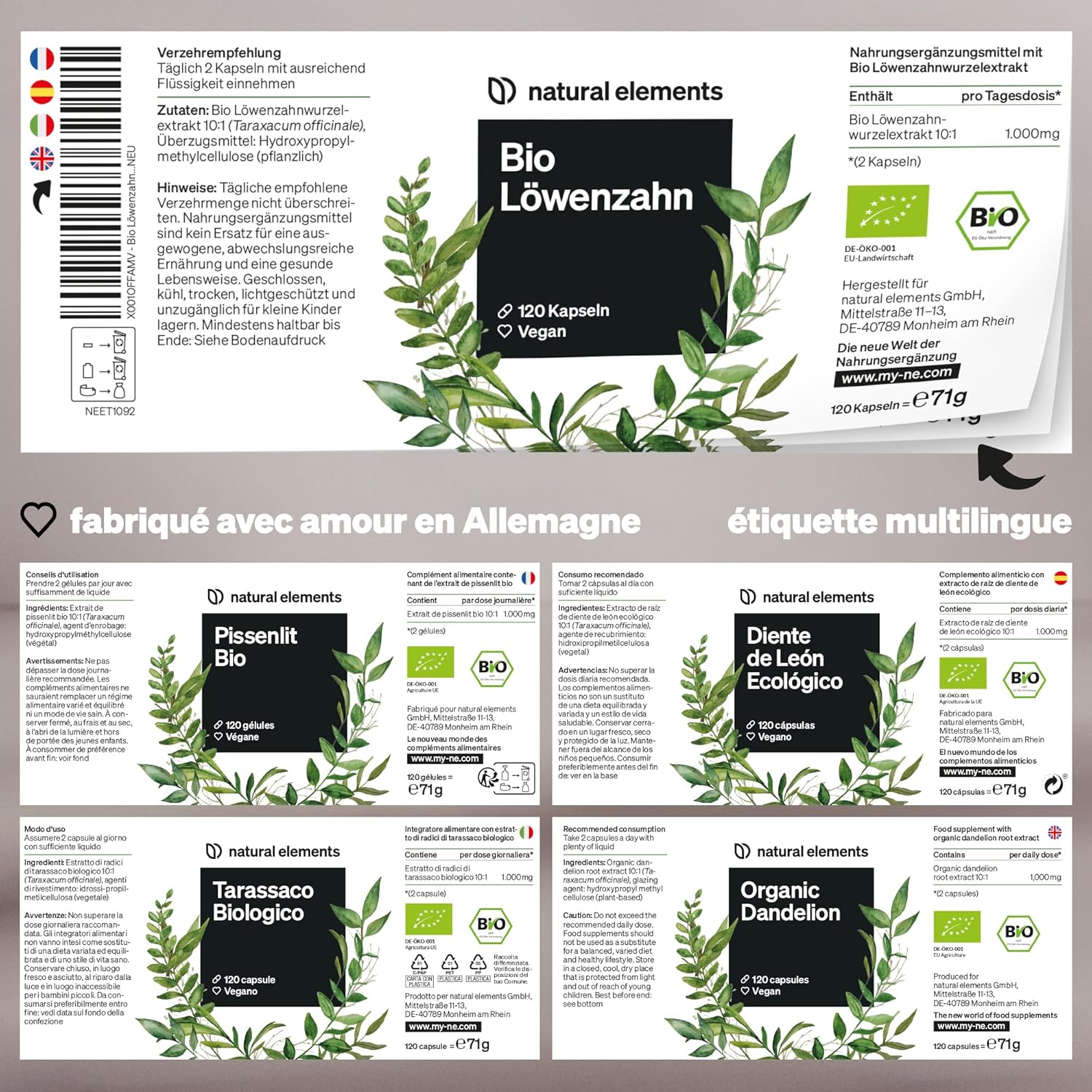 HIGHLY DOSED ORGANIC QUALITY | Each daily dose (2 capsules) provides 1,000 mg of concentrated organic dandelion root extract, from controlled ecological agriculture. Naturally non-GMO.