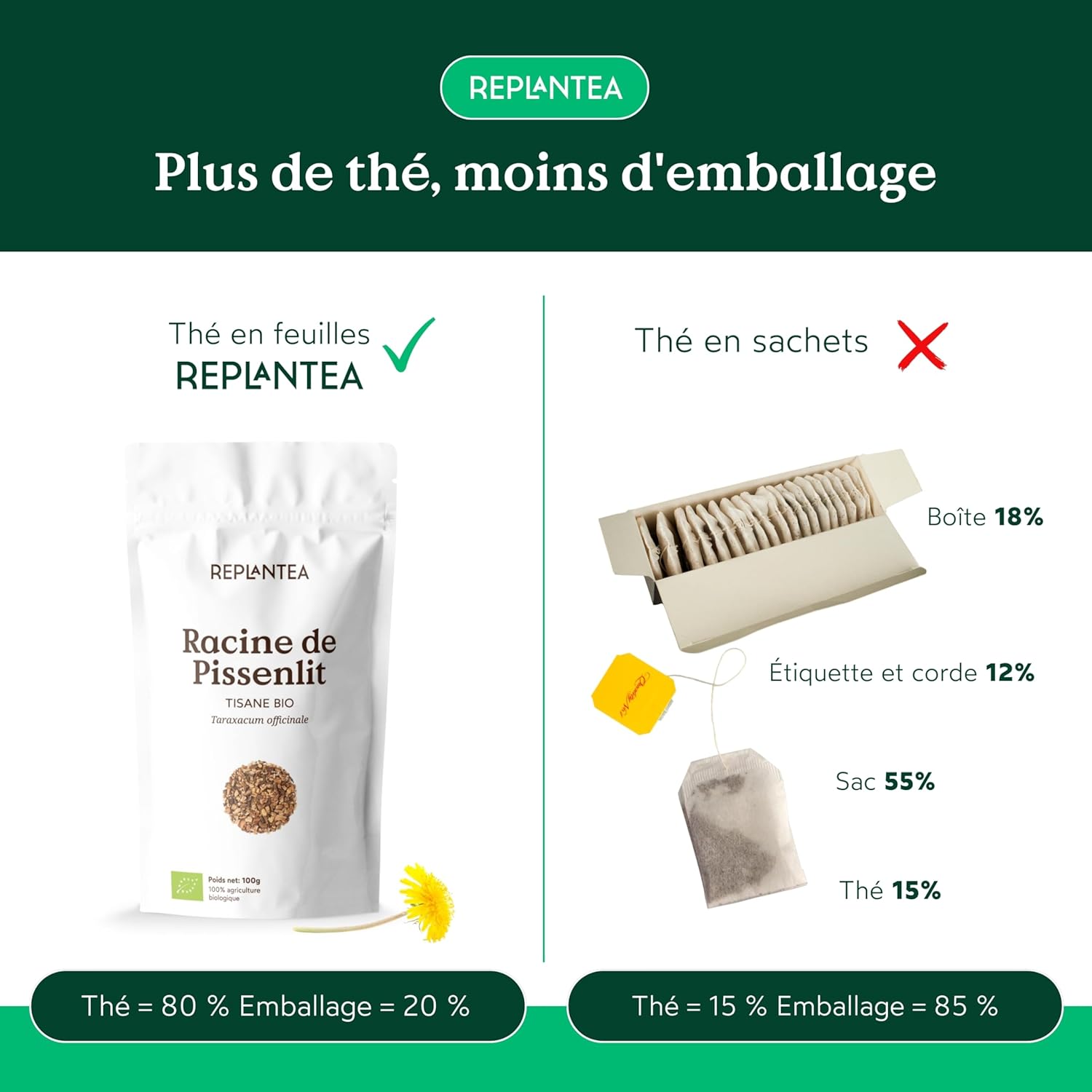 ECOLOGICAL & GENEROUS FORMAT: With 100g of organic dandelion root, each sachet makes up to 50 cups, for sustainable and responsible enjoyment.