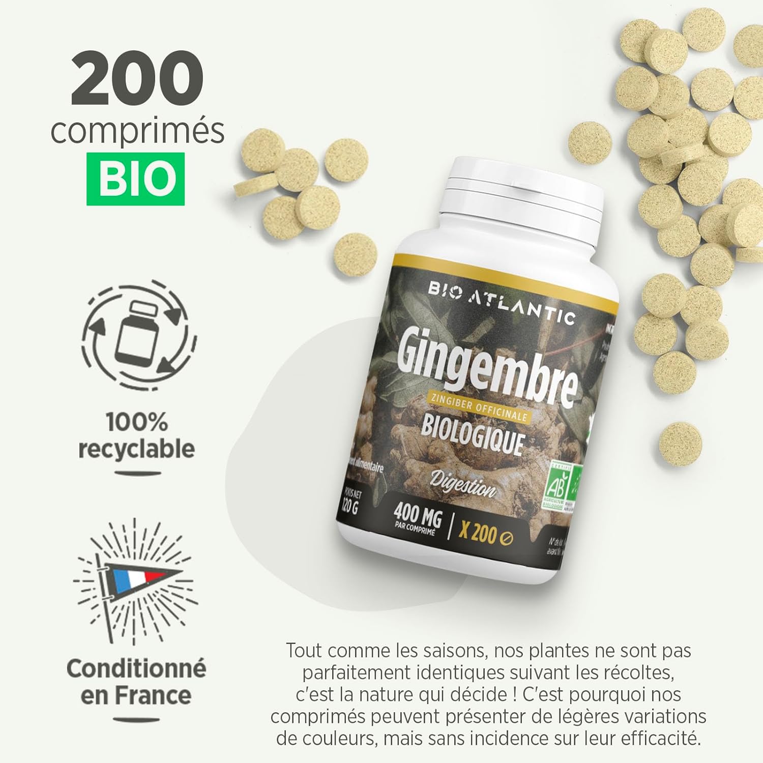 Organic Ginger – 400 mg – 200 tablets