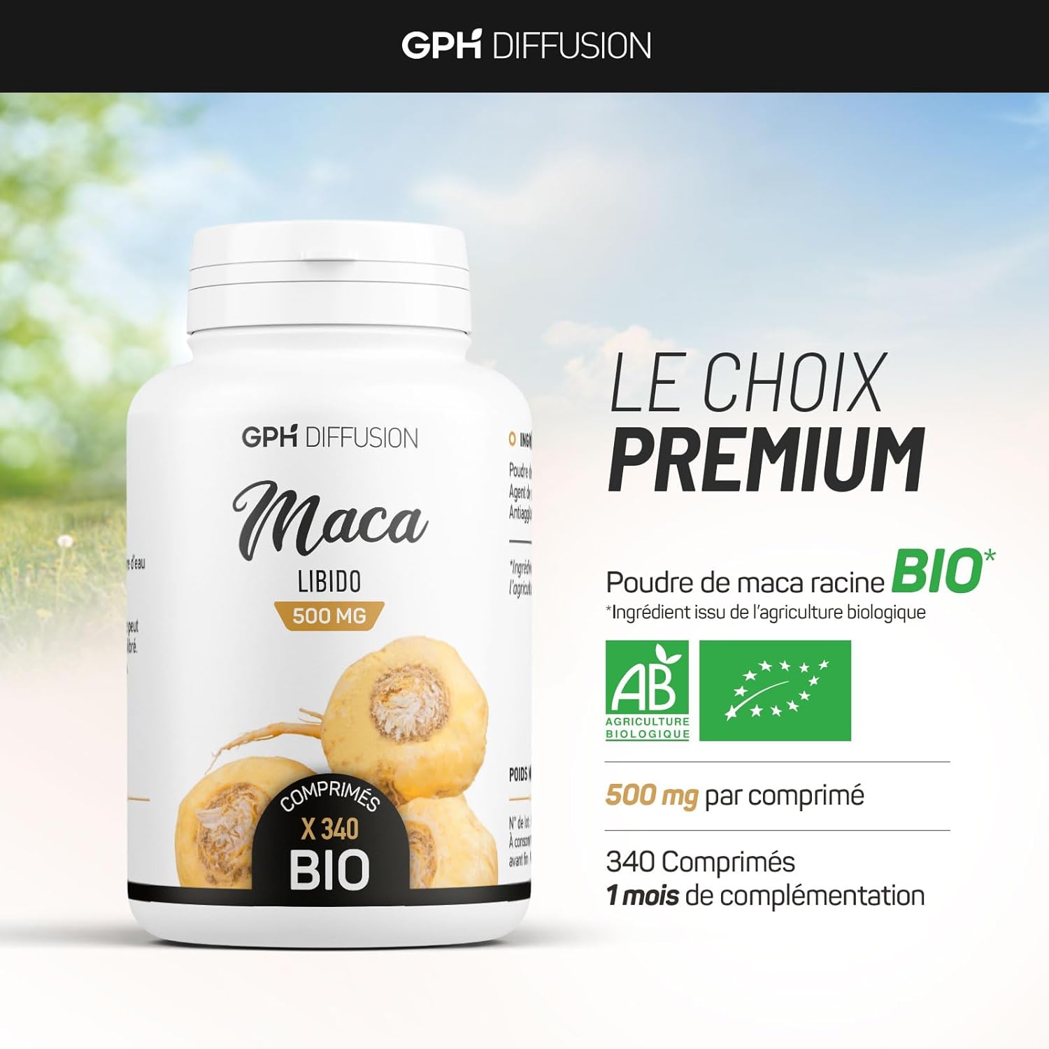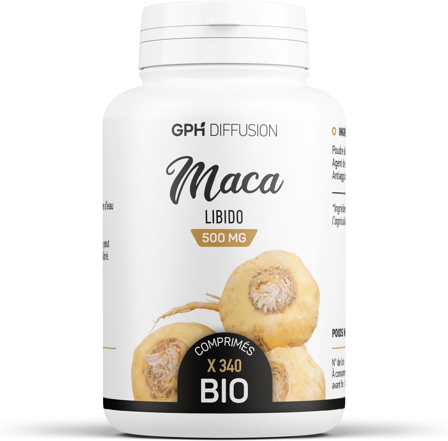 Les racines de Maca sont récoltées au Pérou, leur pays d’origine, avant d’être soigneusement triées et lavées. Après un processus de désinfection essentiel pour garantir la qualité de la poudre, les racines sont coupées et séchées. Elles sont ensuite transformées en une fine poudre de 300 µm. Cette poudre est finalement comprimée en France, dans le Sud-Ouest.