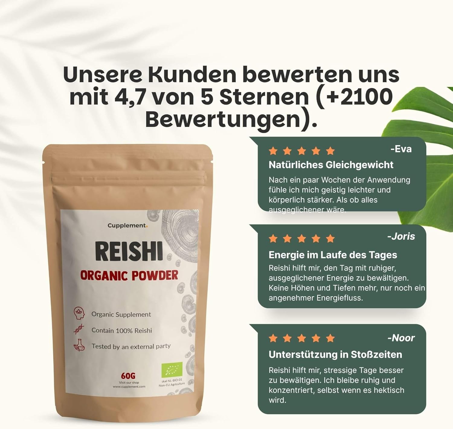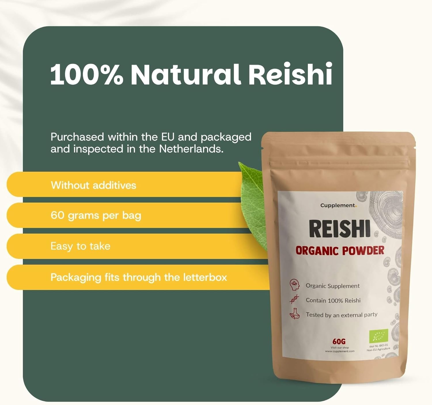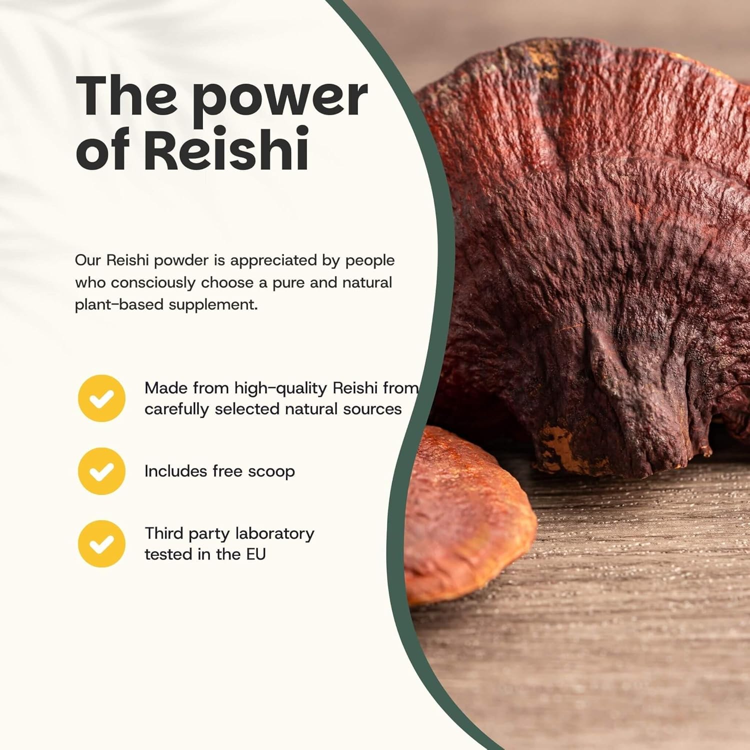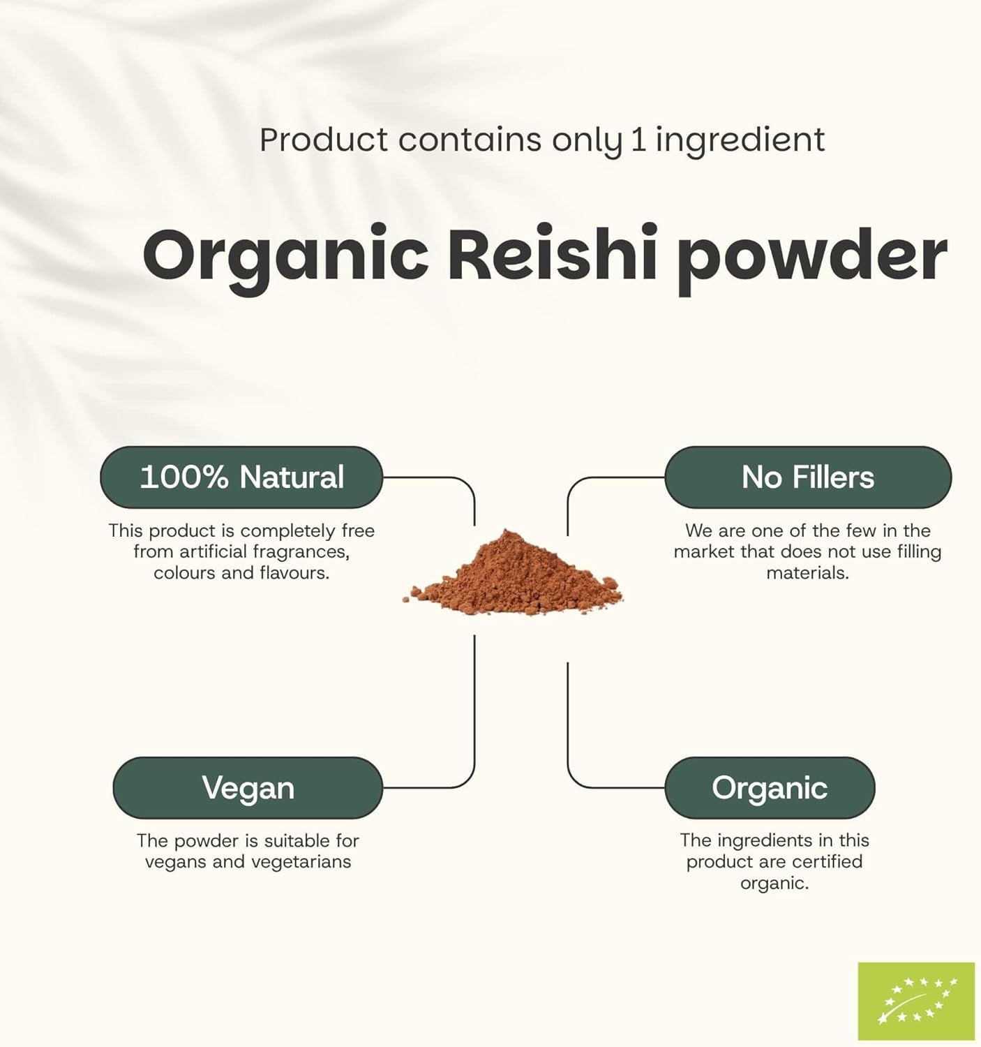 100% ORGANIC – Reishi mushroom powder from certified organic farming.