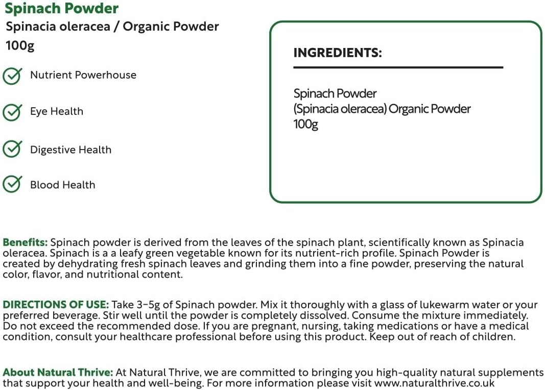 Convenient Powder Shape – Provides a more convenient and durable alternative to fresh spinach, easy to store and use without worrying about spoilage.